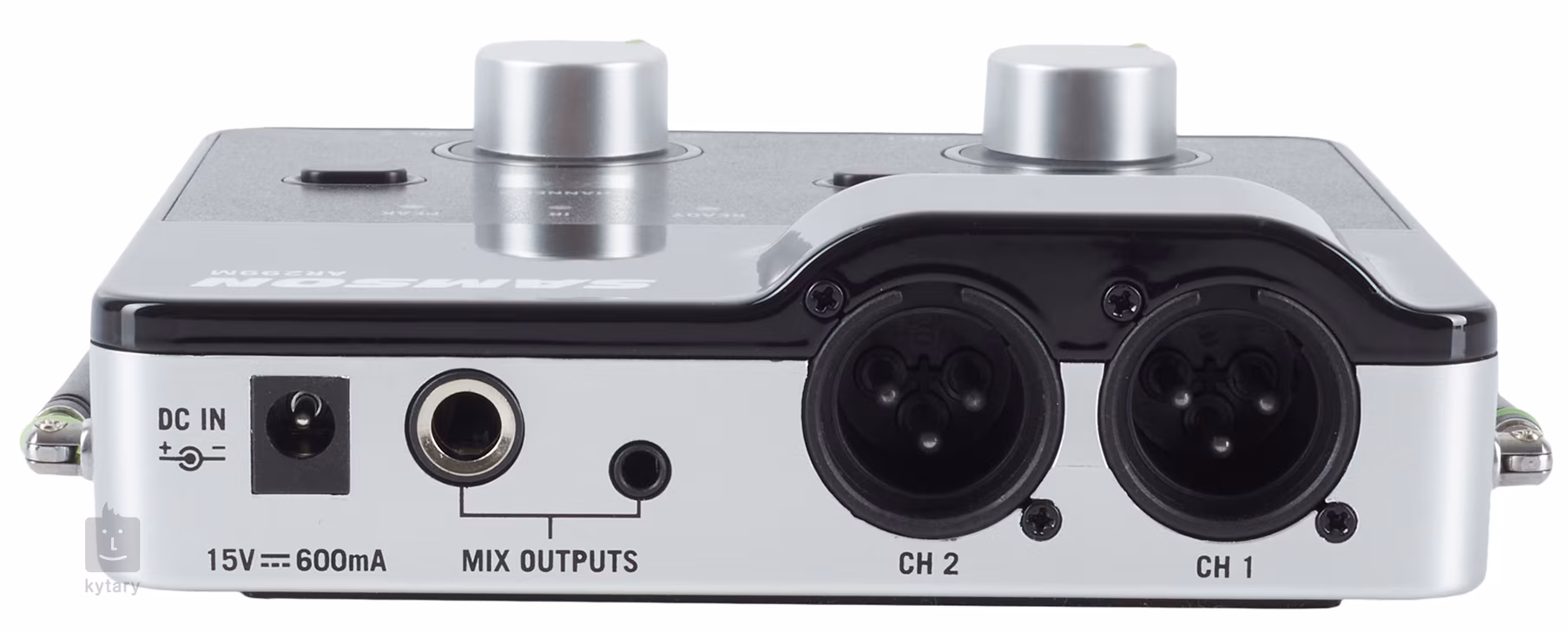 2x XLR, 1x Jack 6,3 mm TS, 1x Jack 3,5 mm TS