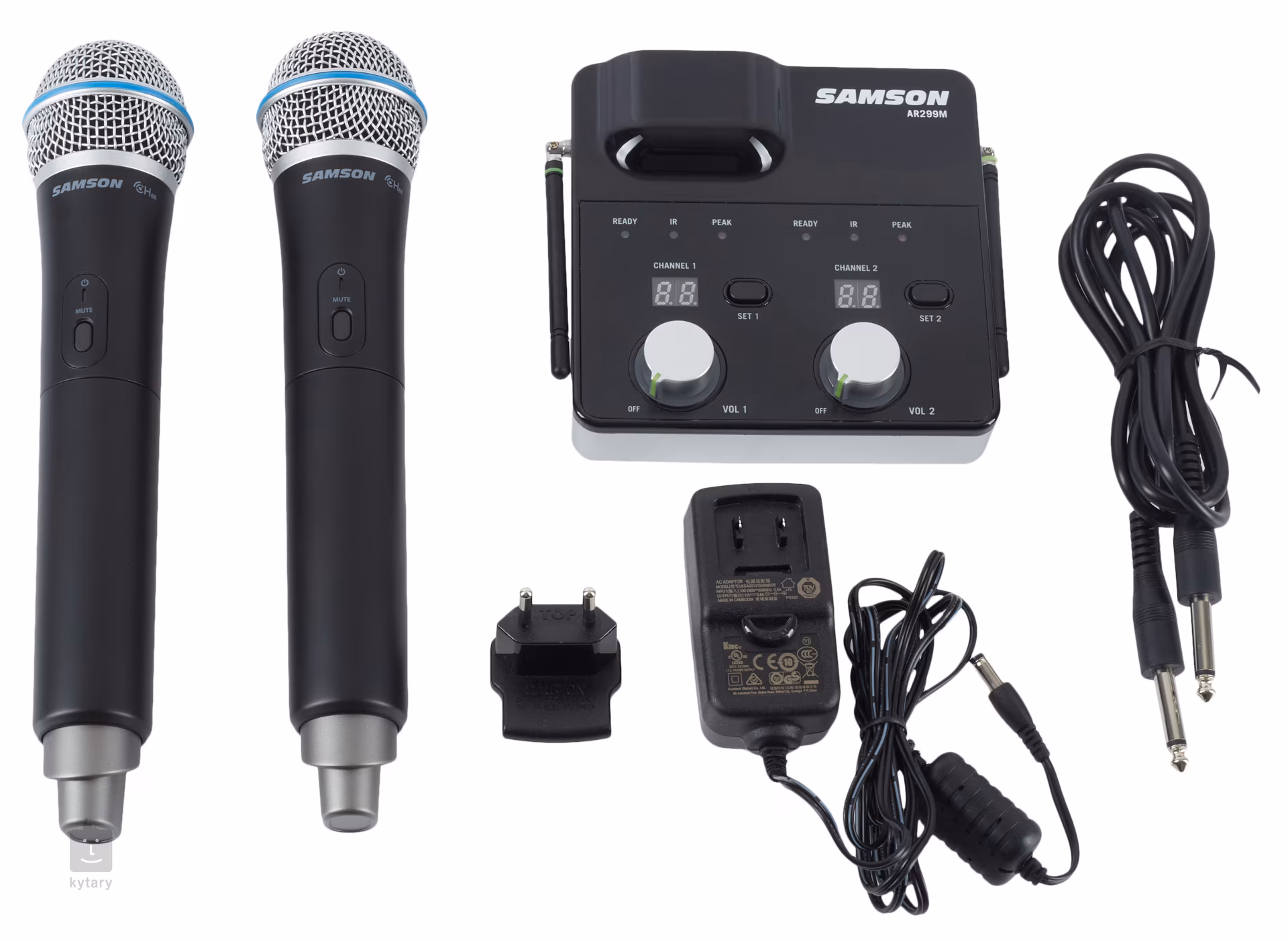 Balenie obsahuje prijímač AR299M, 2x mikrofóny Q8 s vysielačom CH88 a napájací adaptér.