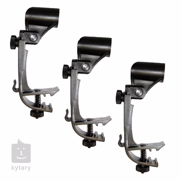 Univerzálne klipy na pripevnenie mikrofónov k ráfiku bubna. Balenie obsahuje tri kusy držiakov.