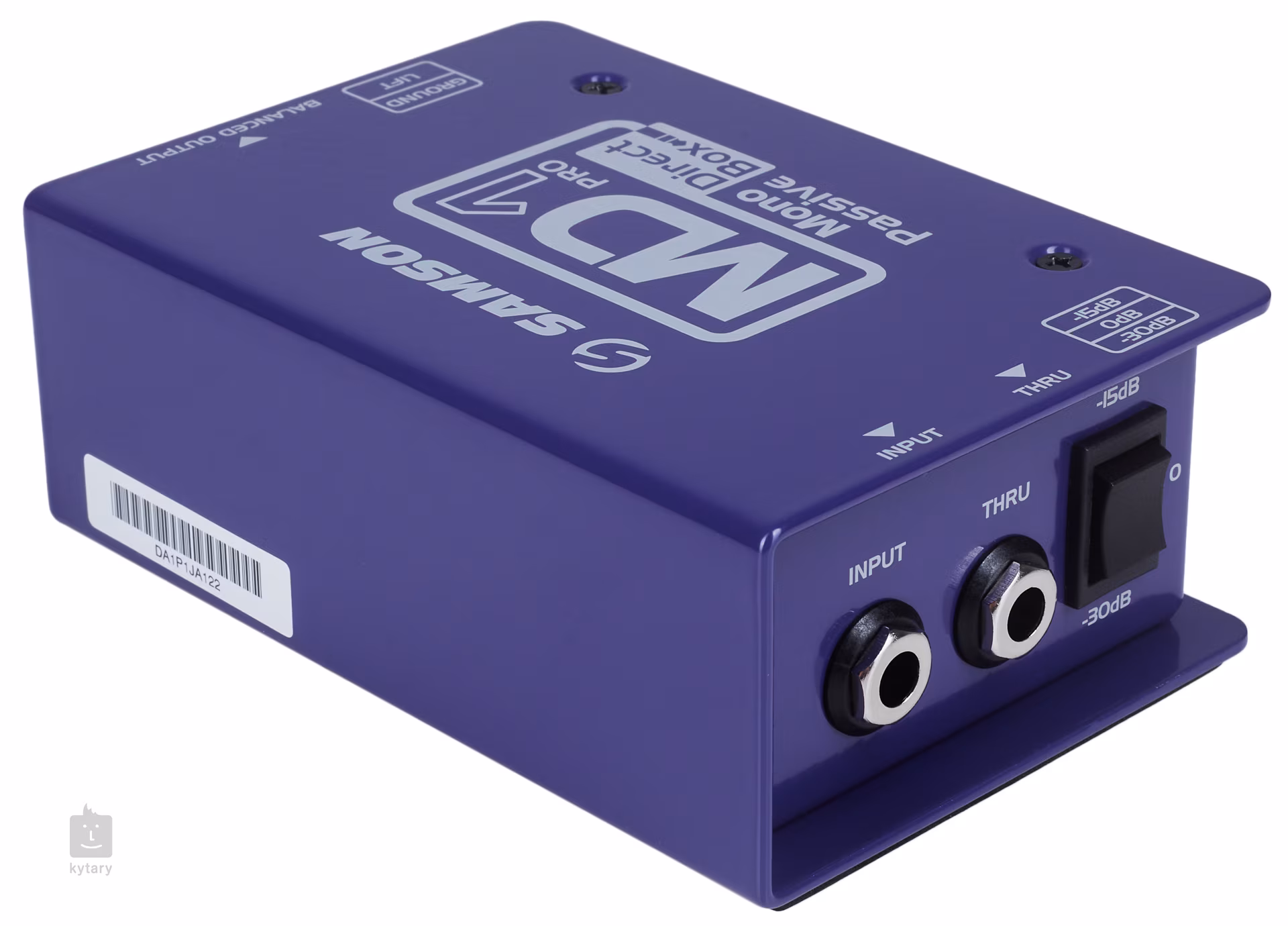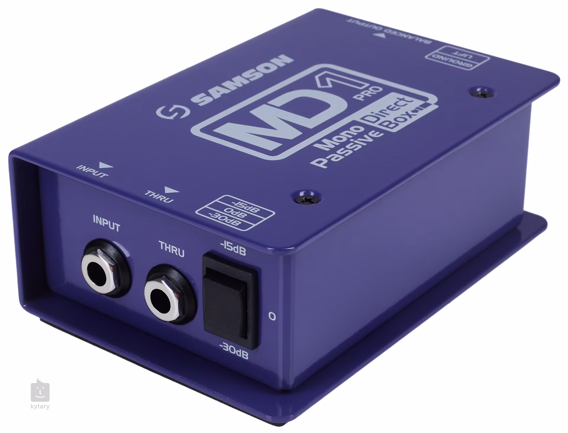 Pasívny mono direct box, odolná celokovová konštrukcia. Transformátor Samson STLX: plochá frekvenčná odozva, veľmi nízke skreslenie, dokonalá ochrana proti brumu a RF rušeniu. Trojpolohový prepínač na zníženie vstupnej citlivosti 0 dB/-15 dB/-30 dB. Prepínateľné uzemnenie.