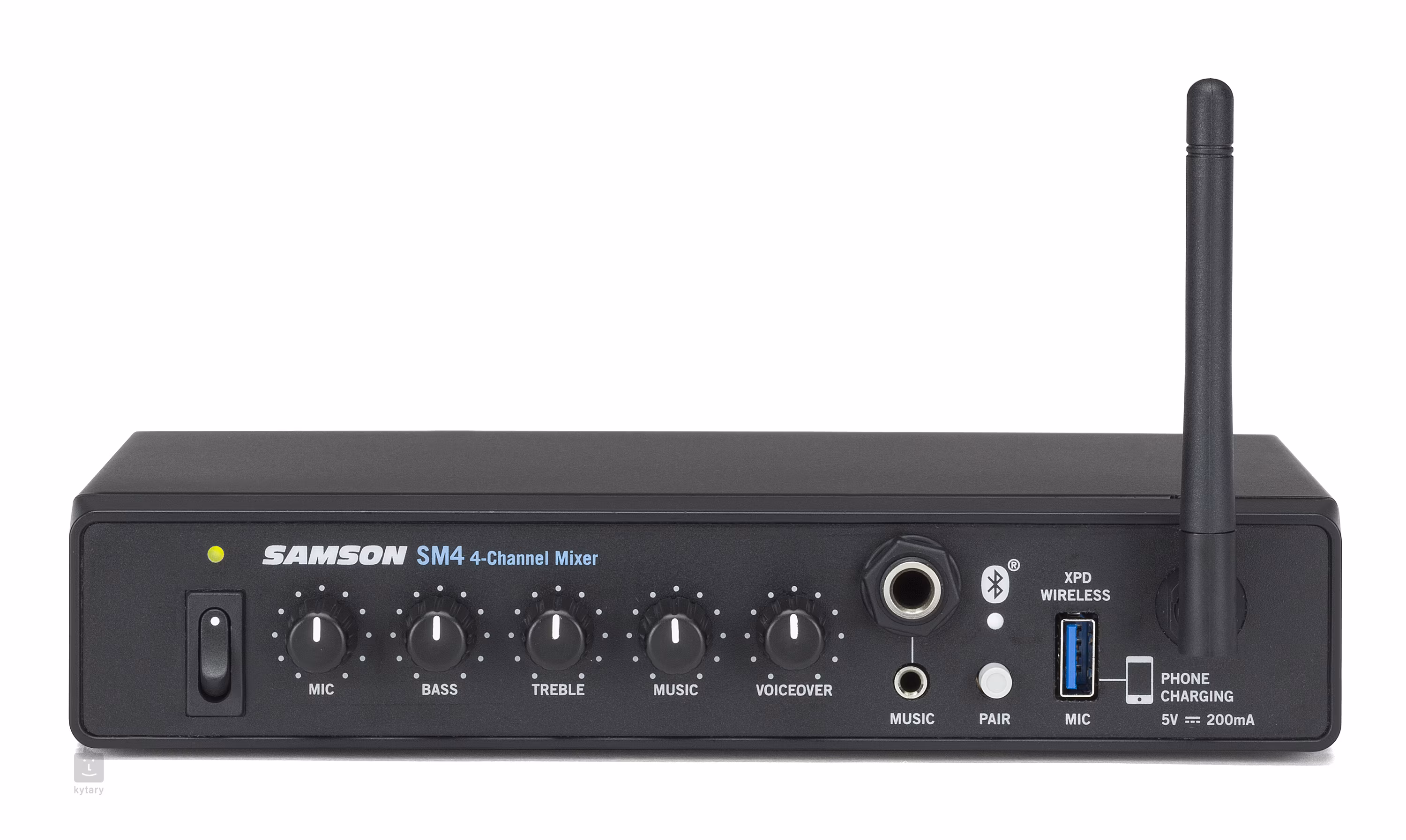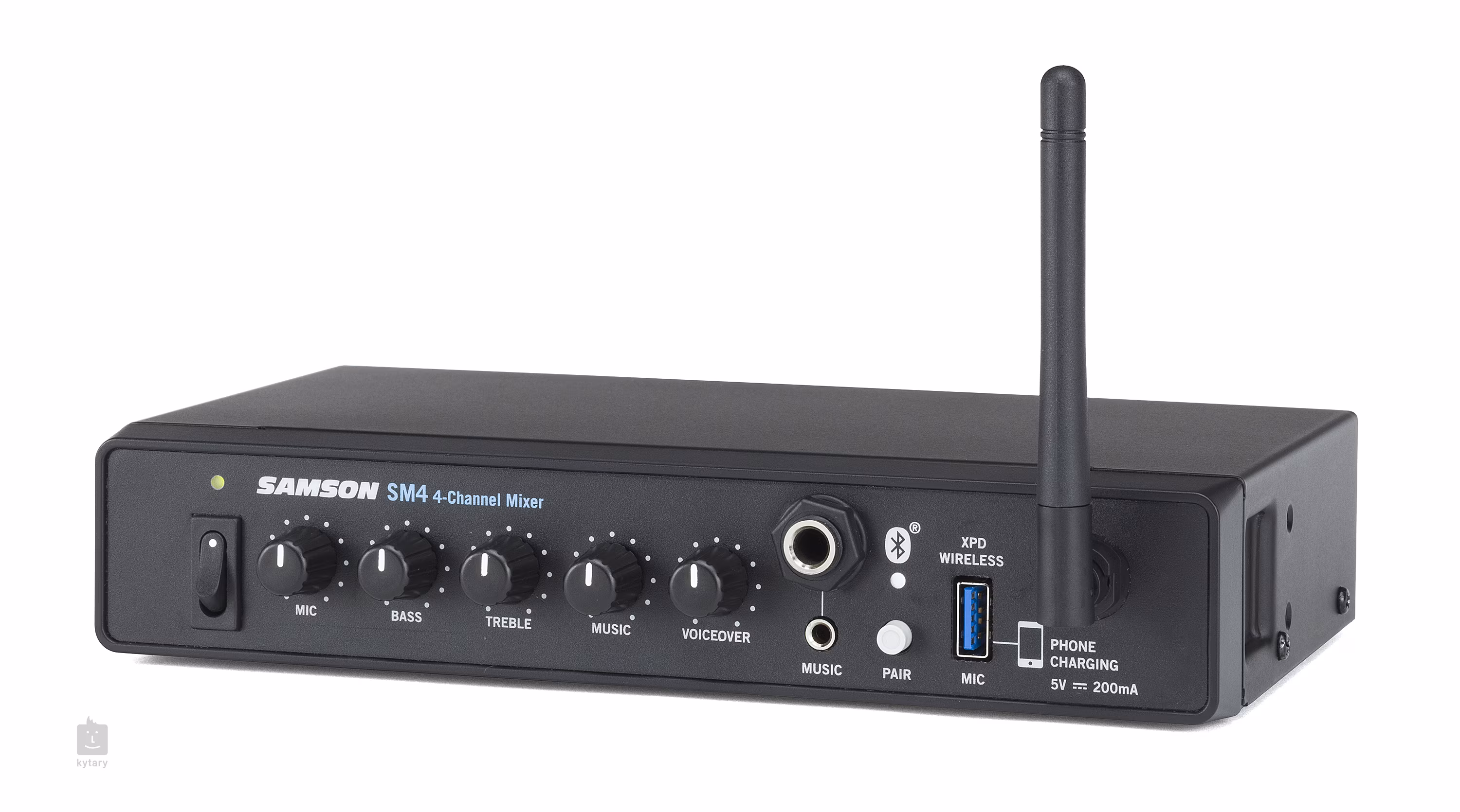 K mixážnemu pultu možno pripojiť mikrofón, nástroj alebo hudobný prehrávač. Na prednej strane sa nachádza päť potenciometrov, ktoré pozostávajú z ovládania hlasitosti pre mikrofón/hudbu, dvojpásmového ekvalizéra pre mikrofónový vstup a efektu Voiceover. Voiceover je efekt, ktorý povýši váš hlas nad reprodukovanú hudbu zapojenú do SM4. Signál z hudobného prehrávača môžete stlmiť až o 30 dB, aby bol váš hlas čistý a zrozumiteľný. Na prednej strane nájdete vstup na pripojenie hudobného prehrávača (3,5 mm a 6,3 mm jack) a vstup na pripojenie wifi Samson Stage XPD, ktoré umožňuje bezdrôtový prenos signálu. Ďalšie možné pripojenie k zariadeniu SM4 je prostredníctvom rozhrania Bluetooth. Na zadnej strane nájdete kombinovaný vstup XLR/Jack na pripojenie mikrofónu, vstup RCA na pripojenie hudobného prehrávača, výstup AUX a stereo výstup XLR na pripojenie k inému PA.
