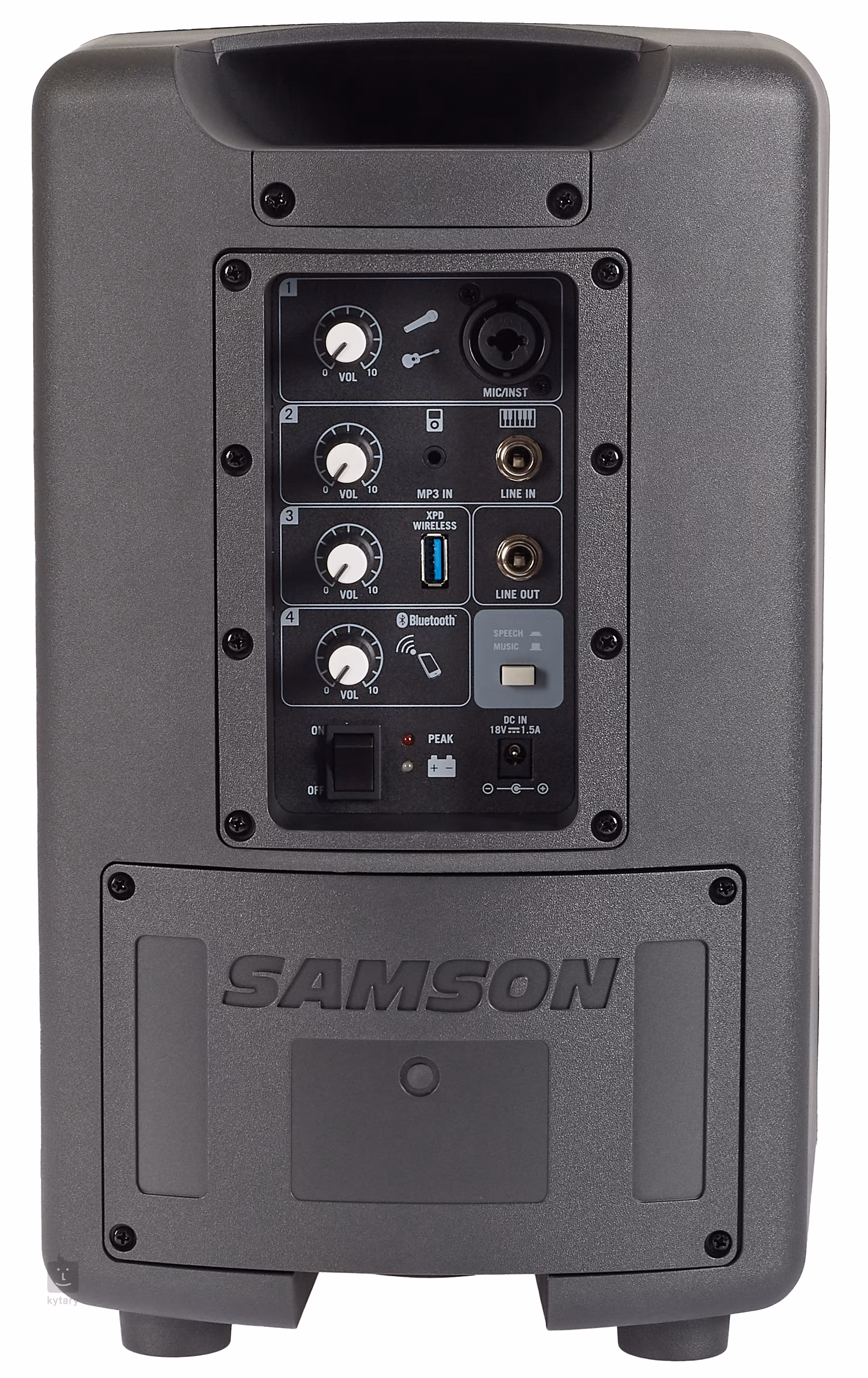Kompaktný a ľahko prenosný PA systém s rôznymi možnosťami. Systém je vybavený nabíjateľnou batériou s výdržou až 20 hodín. Odolný a ľahký plastový reproduktorový box je vybavený dvojicou 6" wooferov a 1" výškovým reproduktorom. Zosilňovač triedy D produkuje výkon až 100 W, čo bez problémov stačí na ozvučenie pouličných vystúpení alebo záhradných či domácich párty. Systém je možné pripojiť k zdroju zvuku aj prostredníctvom bezdrôtového pripojenia Bluetooth. Okrem toho systém ponúka aj 4-kanálový mix s kombinovaným vstupom Jack 6,3 mm / XLR pre mikrofón alebo nástroj, vstup pre klávesy alebo prehrávač, samostatný vstup pre pripojenie USB a samostatný vstup pre zariadenia Bluetooth. Každý kanál je vybavený vlastným ovládaním hlasitosti. Súčasťou balenia je aj dynamický mikrofón s káblom. Farba: čierna.
