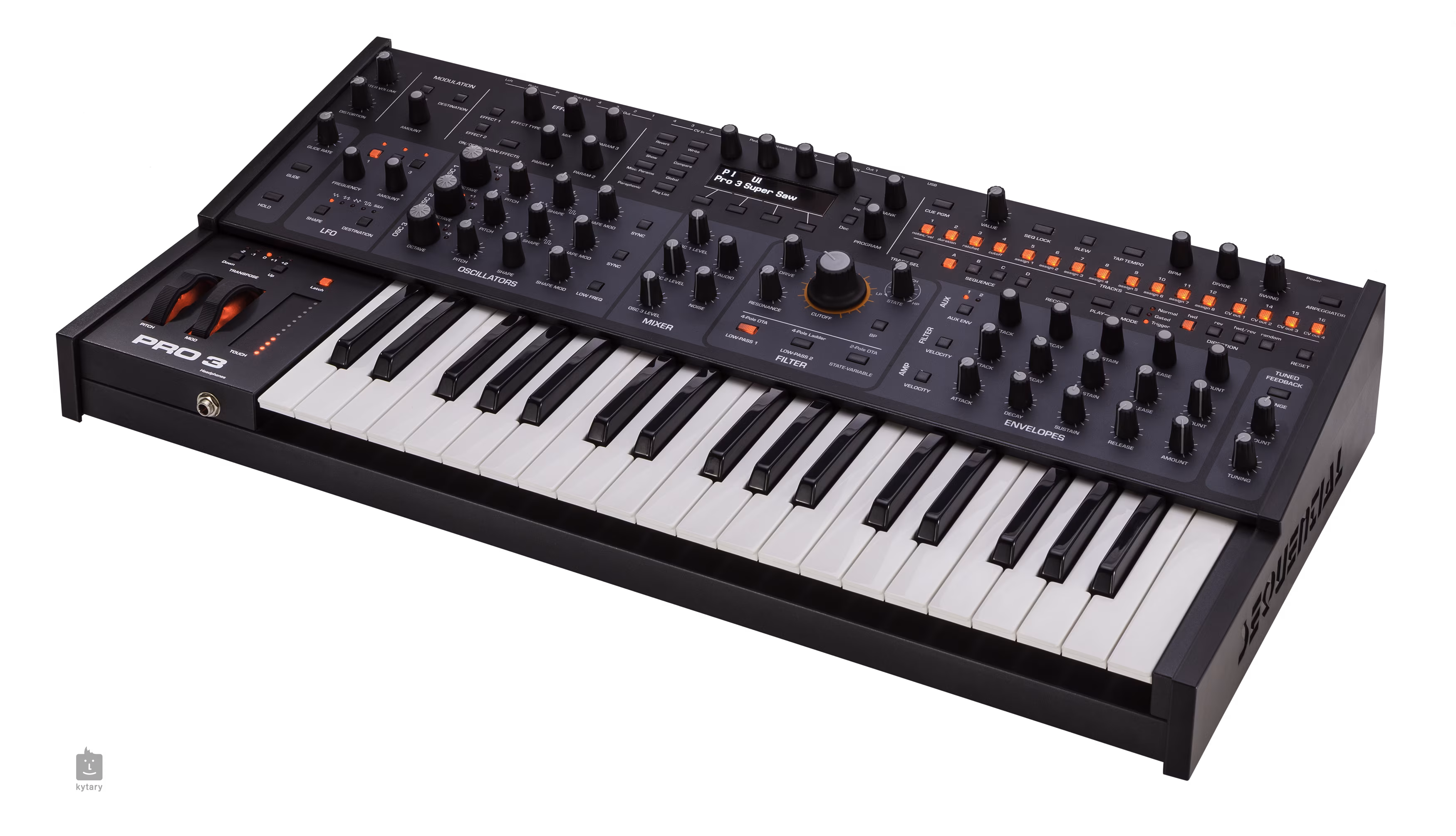 Pokročilý mono/parafonický syntetizér Sequential Pro 3 ponúka takmer nekonečné možnosti úpravy zvuku a s nimi aj obrovskú zvukovú univerzálnosť. Syntetizér je vybavený tromi oscilátormi, tromi vintage filtrami, tromi LFO, štyrmi ADSR obálkami, masívnou modulačnou matricou s 32 slotmi a výkonným 16-stopovým sekvencerom. Pridajte k tomu sekciu digitálnych efektov a máte jeden z najuniverzálnejších a najinšpiratívnejších syntetizátorov, aké kedy boli vytvorené.