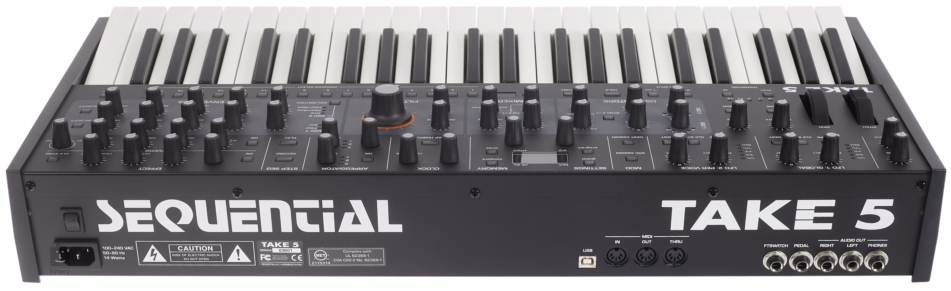 Päťhlasový polyfonický syntetizér Sequential Take 5 ponúka obrovské kreatívne možnosti, ktoré ocenia ako začiatočníci, tak aj profesionálni hráči. Jeho kompaktné rozmery zaisťujú ľahkú prenosnosť, takže nástroj môžete mať vždy po ruke, či už na pódiu, v štúdiu, v skúšobni alebo doma na stole. Nástroj má 44 klávesov štandardnej veľkosti a polovyváženú klávesnicu s voliteľným Aftertouchom, s celkovým rozsahom 3½ oktávy. Vďaka funkcii Low Split je možné klávesnicu rozdeliť na dve zóny s rôznymi tónovými rozsahmi, čo výrazne rozširuje vaše možnosti hry.