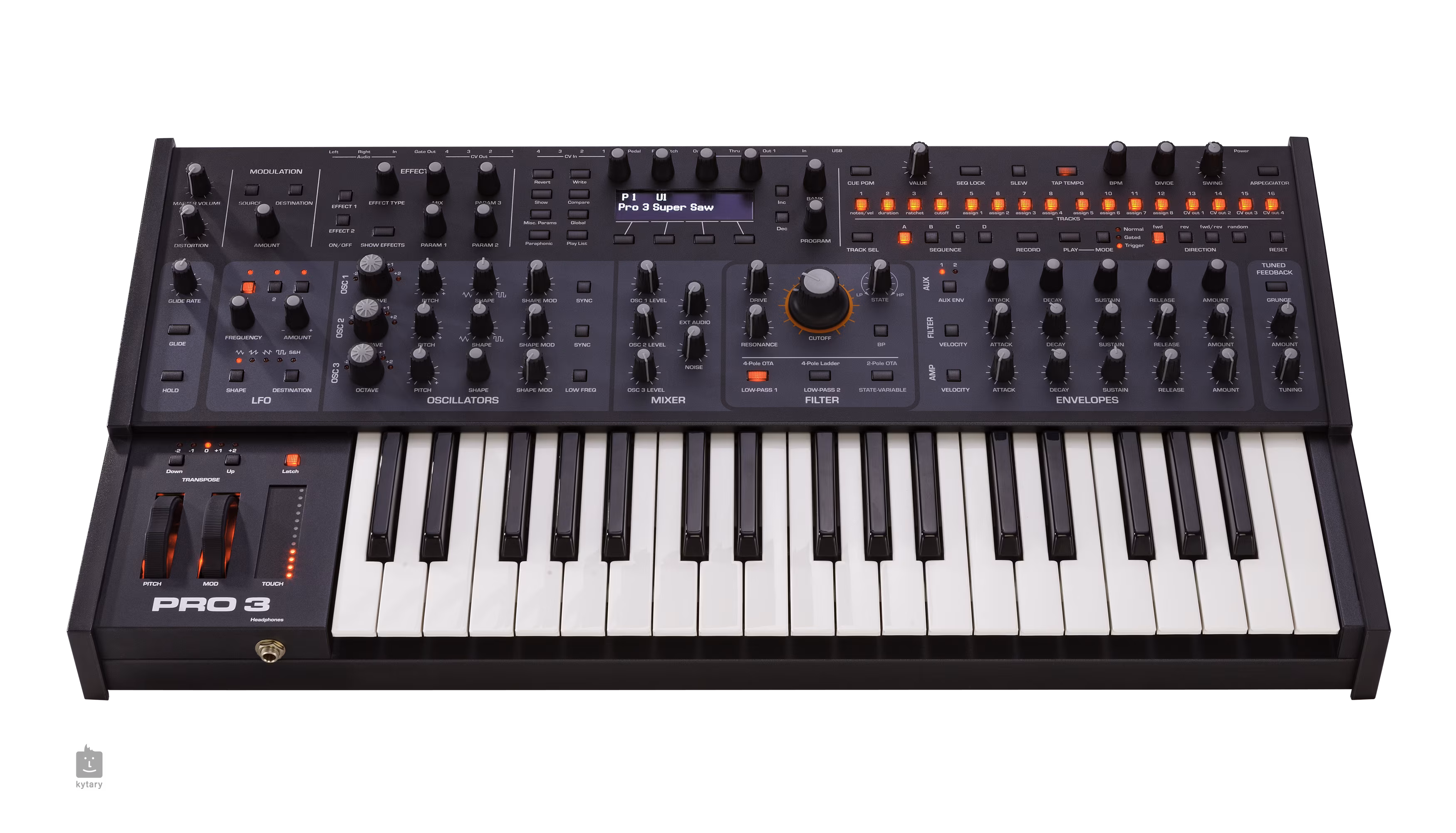 Pokročilý mono/ parafonický syntetizátor Sequential Pro 3 ponúka takmer nekonečné možnosti úpravy zvuku a s nimi aj obrovskú zvukovú všestrannosť. Syntetizátor je vybavený tromi oscilátormi, tromi vintage filtrami, tromi LFO, štyrmi ADSR obálkami, masívnou 32-slotovou modulačnou maticou a výkonným 16-stopovým sekvencerom. Pridajte sekciu digitálnych efektov a máte jeden z najvšestrannejších a najinšpiratívnejších syntetizátorov, aké kedy uzreli svetlo sveta.