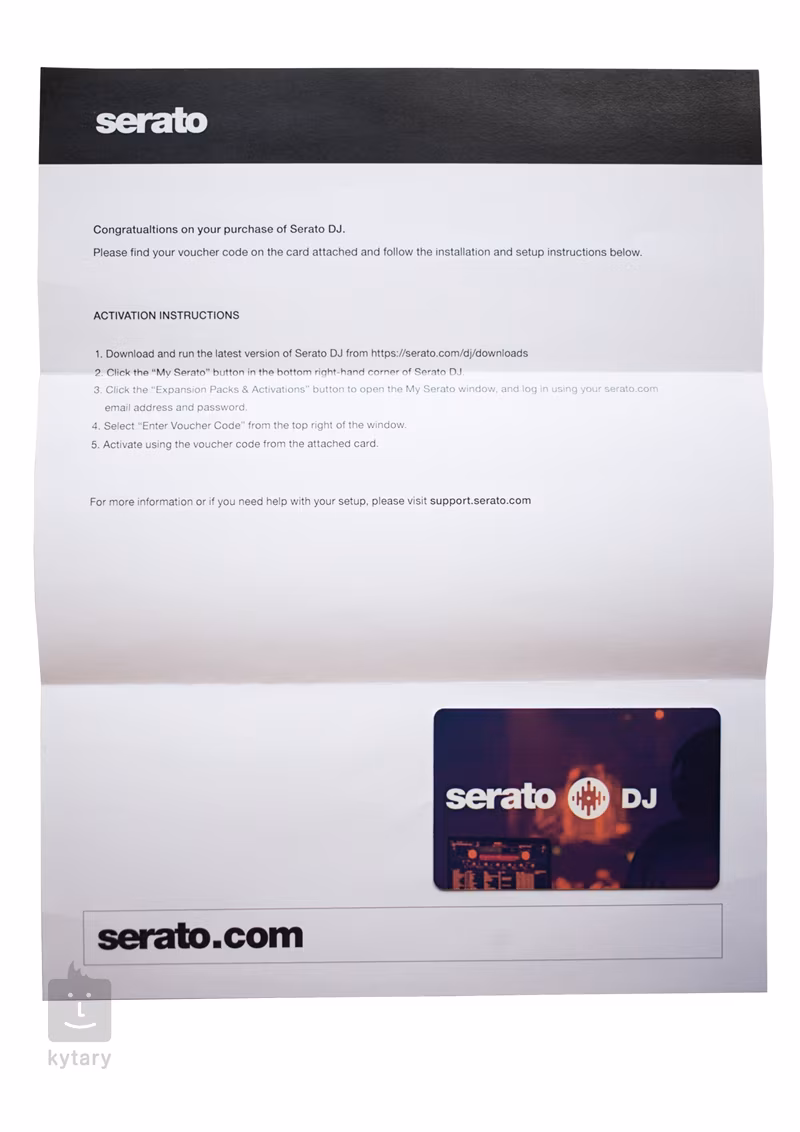 Karta s licenčním kódem pro plnou verzi DVS softwaru Serato DJ.