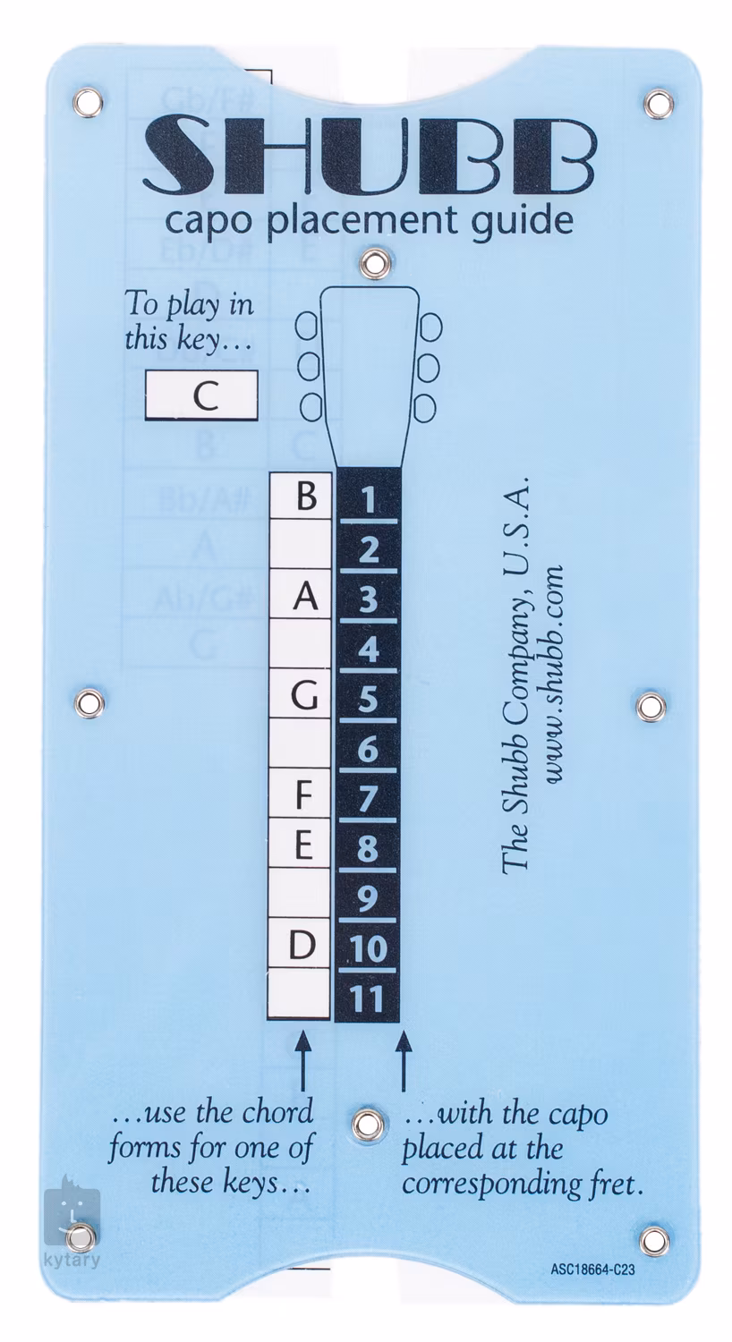 S touto malou príručkou do vrecka dokážete v okamihu transponovať z pôvodnej tóniny do zvolenej tóniny. Stačí nastaviť stupnicu na pôvodnú a novo zvolenú tóninu a hrať. Zadná strana ponúka ilustráciu umiestnenia kapodastra pre rôzne ladenia. Tento kompaktný nástroj je vyrobený z plastu, vďaka čomu vydrží dlhšie a uložíte ho prakticky kdekoľvek.