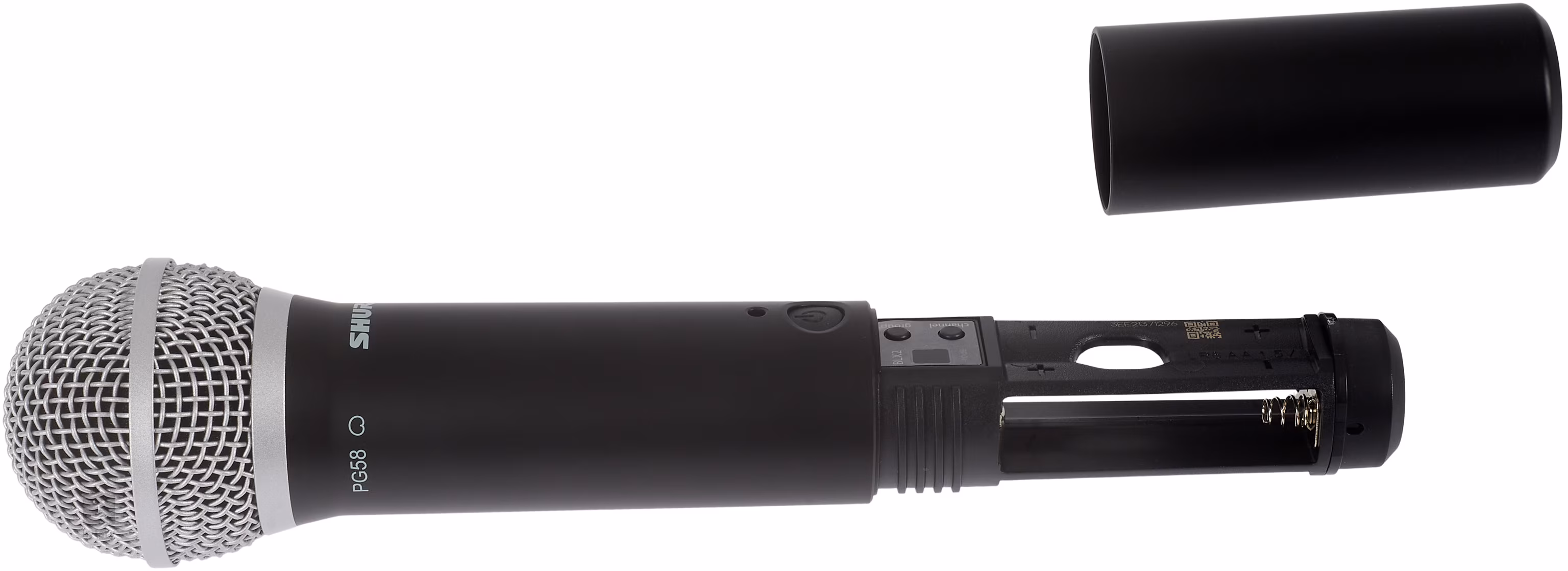 Mikrofónový vysielač so zabudovanou dynamickou kapsulou PG58, vhodný na vokály. Funguje až 14 hodín na 2 batérie AA.
