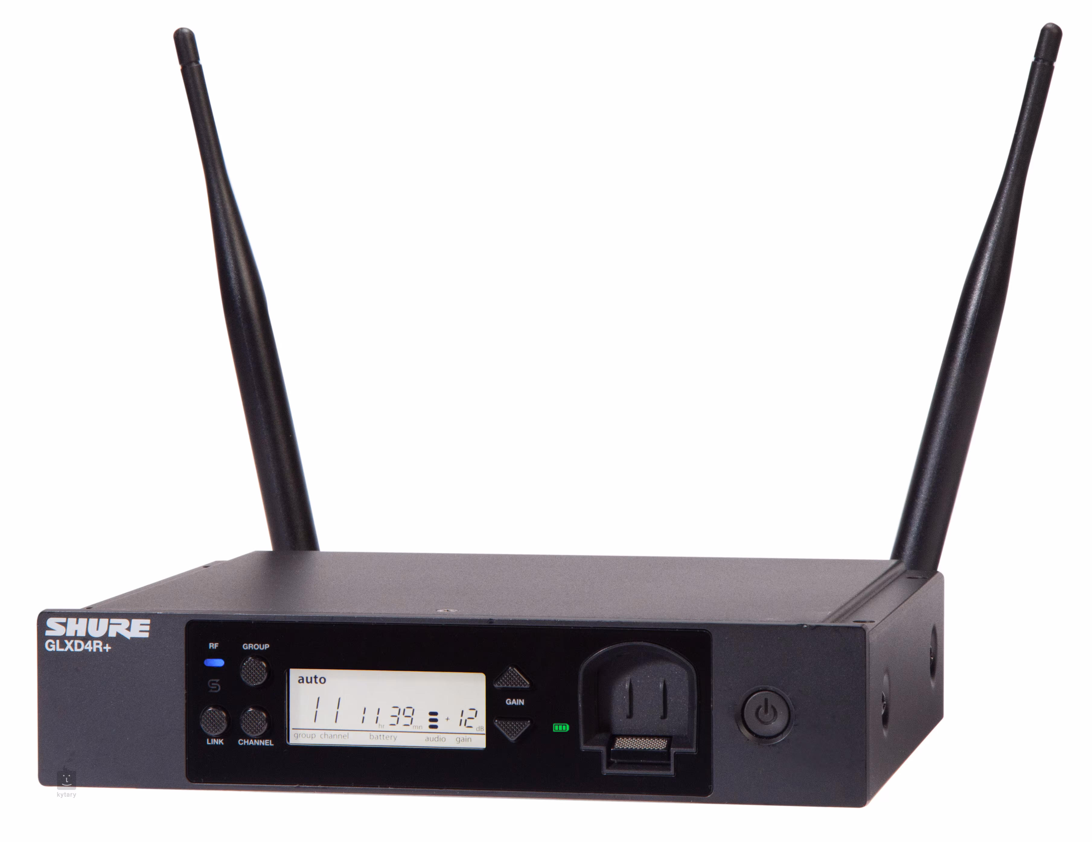 Dodávaná lítium-iónová batéria ponúka až 12 hodín prevádzky na jedno nabitie a viacero spôsobov nabíjania. V kombinácii so samostatne predávaným príslušenstvom, t. j. rackovým rozbočovačom Frequency Manager a aktívnou bezdrôtovou anténou, sú bezdrôtové súpravy Shure GLX-D+ ideálnym riešením pre menšie a stredne veľké inštalácie/koncerty/vystúpenia, kde je potrebných viacero kanálov (súčasne možno prevádzkovať až 11 rackových systémov).