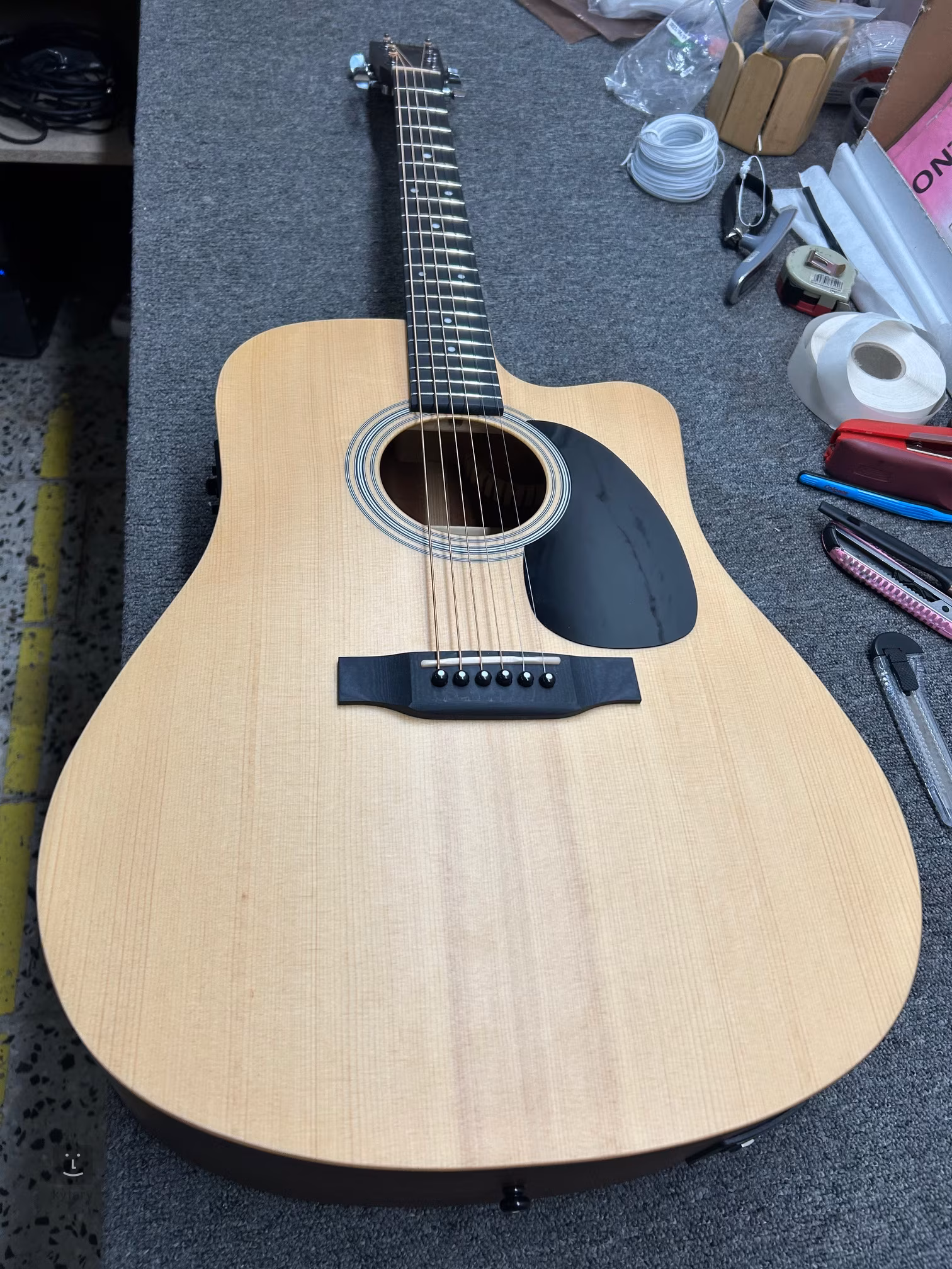 Predná doska gitary je vyrobená z masívneho smreka Sitka, zadná doska a luby sú z laminovaného mahagónu. Vďaka osvedčenej kombinácii smreka a mahagónu a vyváženému pomeru zvukovej čistoty a hrejivosti je Sigma DMC-STE univerzálne dobrou voľbou pre mnohé hudobné štýly.