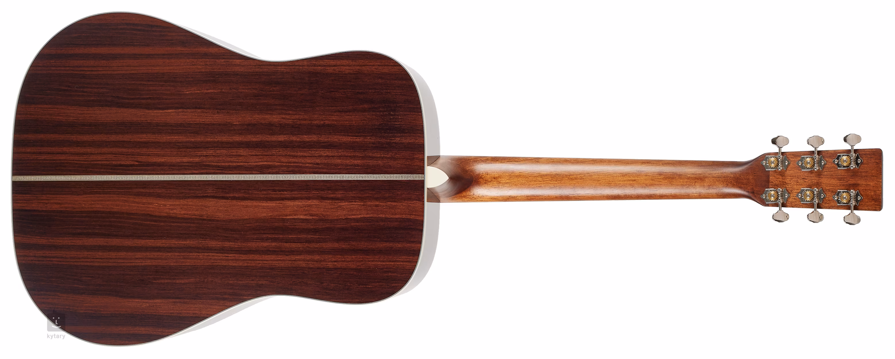 Mahagónový krk gitary je prilepený na kompozitný hmatník Micarta s dvadsiatimi pražcami, orientáciu tradične uľahčujú polohové značky. Struny sú uchytené v kvalitnej otvorenej niklovej mechanike Grover s kolíkmi Butterbean a hmatníkom z micarty. Nultý pražec a kompenzované kostené sedlo zabezpečujú ideálny prenos vibrácií strún. Štýlový dizajn podčiarkuje pickguard s imitáciou korytnačieho panciera, ozdobná rozeta, lemovanie s čiernymi a bielymi líniami a intarzia so vzorom rybej kosti a logo na hlavici.