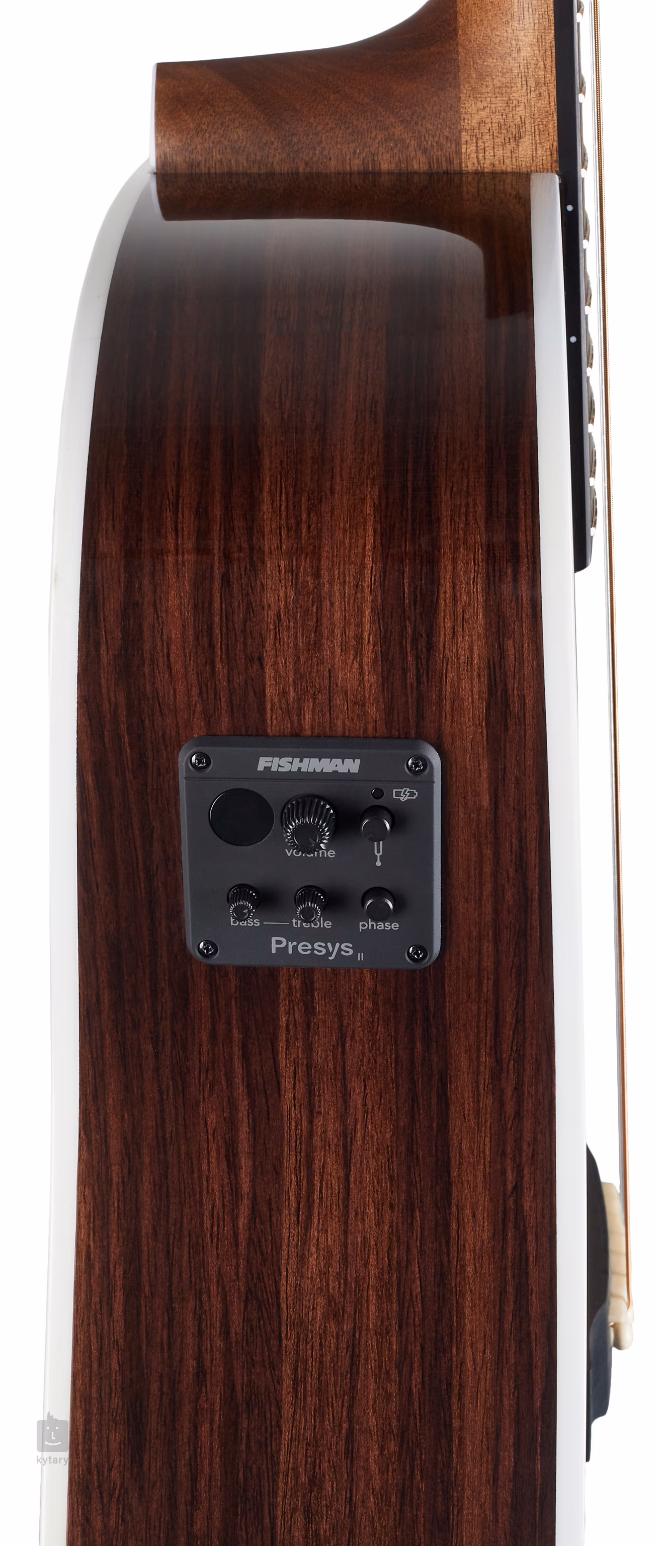 O zvuk gitary sa stará snímač Fishman Sonicore a predzosilňovač Fishman s ovládaním hlasitosti, dvojpásmovým ekvalizérom, tlačidlom Phase na potlačenie spätnej väzby a vstavanou ladičkou. Struny sú osadené chrómovými ladiacimi mechanikami na jednej strane a hmatníkom z micarty na strane druhej. Nultý pražec a kompenzované kostené sedlo zaručujú ideálny prenos vibrácií strún. Štýlový dizajn podčiarkuje pickguard z imitácie korytnačky, ozdobná rozeta, biele lemovanie s čiernymi a bielymi linkami a logo na hlavici.