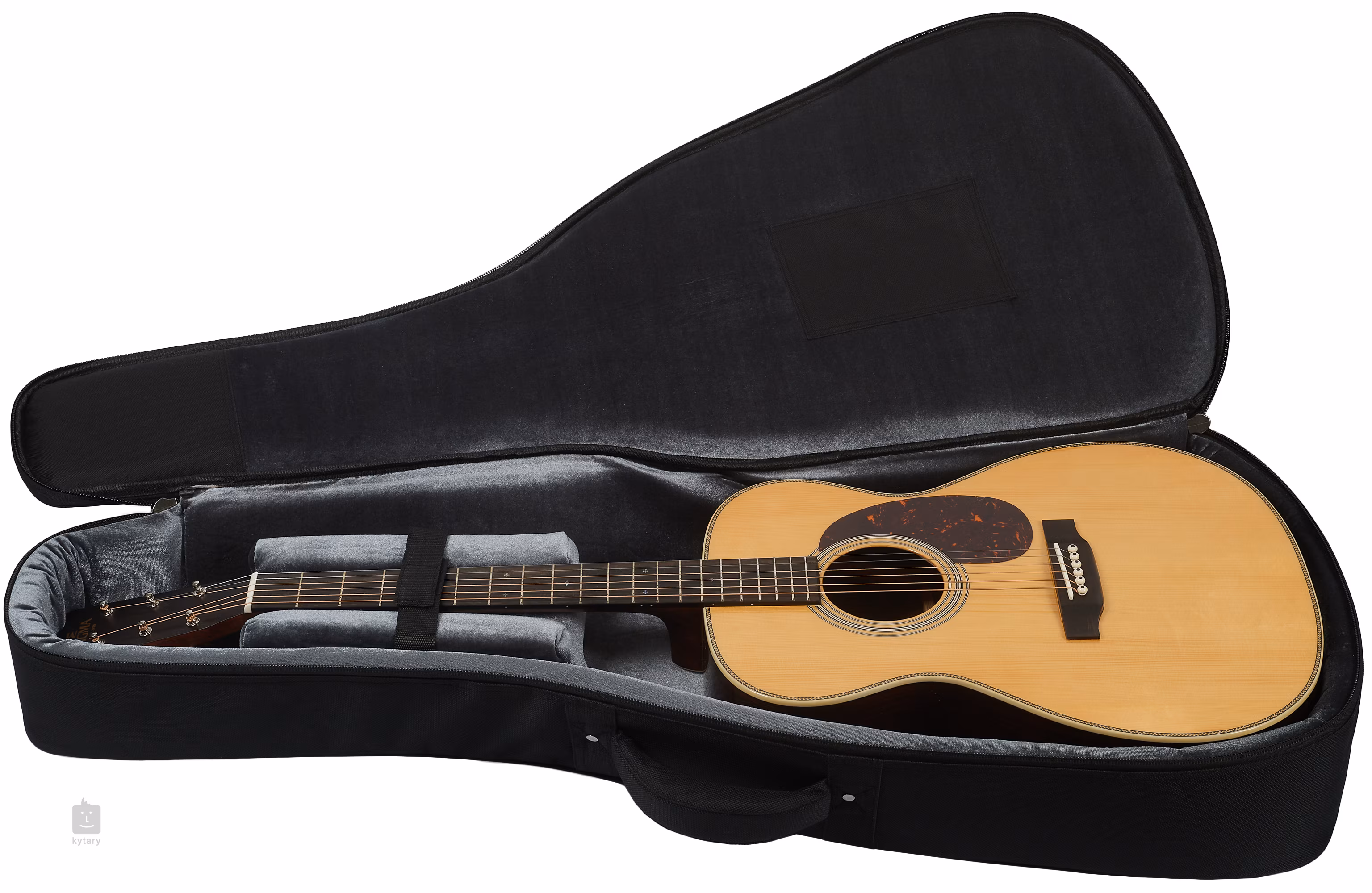 Predná doska gitary je vyrobená z masívneho smreka Adirondack kvality AA, zadná doska a luby sú z masívneho indického palisandru. Kombinácia týchto drevín zaručuje čistý zvuk s teplými basmi a skvelou dynamikou. Ebenový hmatník je štandardne prilepený k mahagónovému krku s profilom Modified V, ktorý je k telu pripojený pomocou Dovetail Neck Joint na 14. pražci. Orientáciu na povrchu hmatníka uľahčujú ozdobné polohové značky.