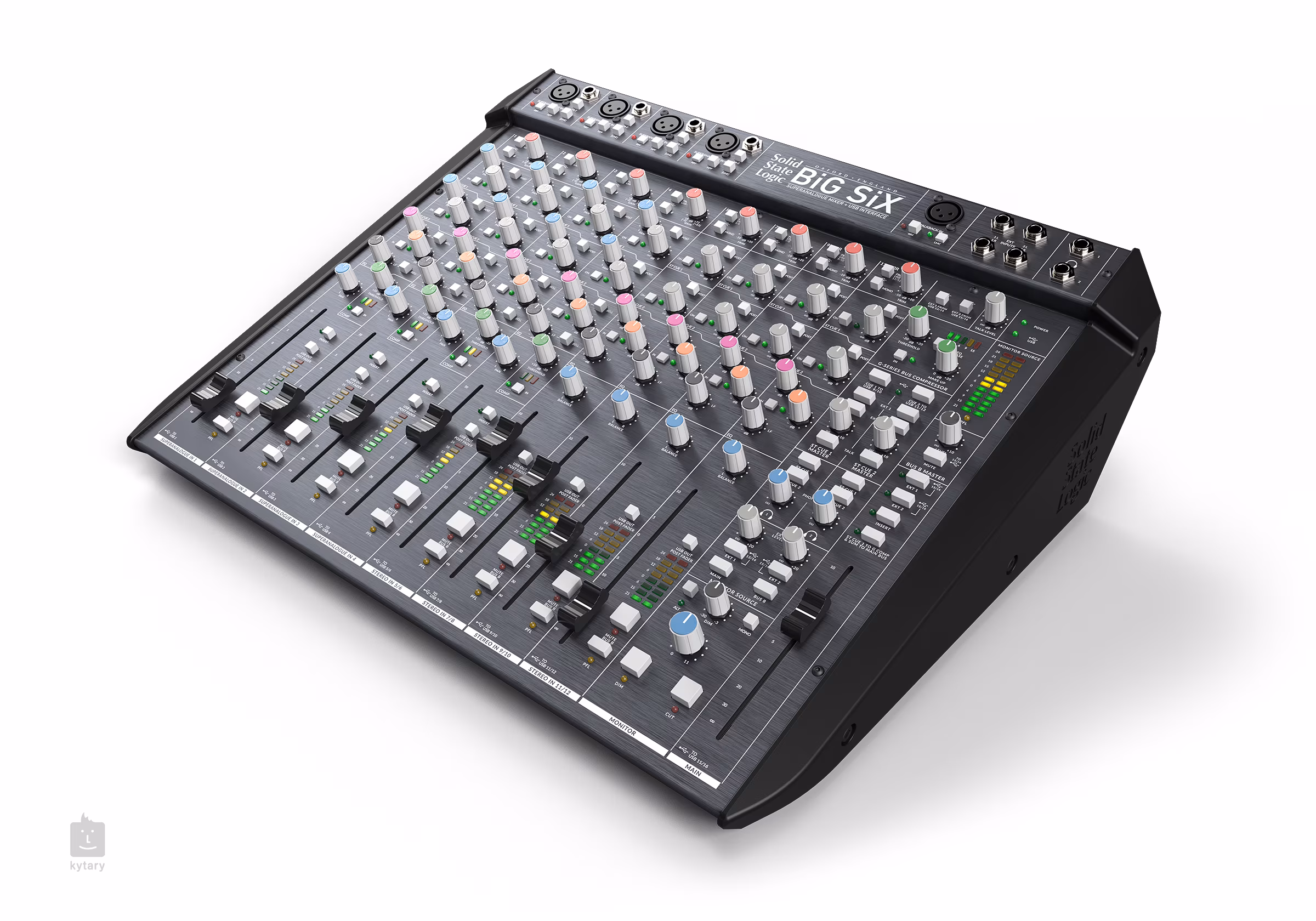 BiG SiX je jedinečný mixážny pult, ktorý spĺňa najmodernejšie požiadavky a trendy, vhodný pre profesionálne nahrávacie štúdiá, postprodukciu, živé vystúpenia alebo produkciu podcastov. Mixážny pult novej generácie vám ponúka vysokokvalitné mikrofónne predzosilňovače SuperAnalogue, Bus kompresor so známym Auto release, trojpásmový EQ, intuitívny ovládací panel a nespočetné množstvo efektov na úpravu vstupného signálu. Novo obsahuje 16-kanálové zvukové rozhranie USB s kvalitou záznamu až 24 bitov/96 kHz.