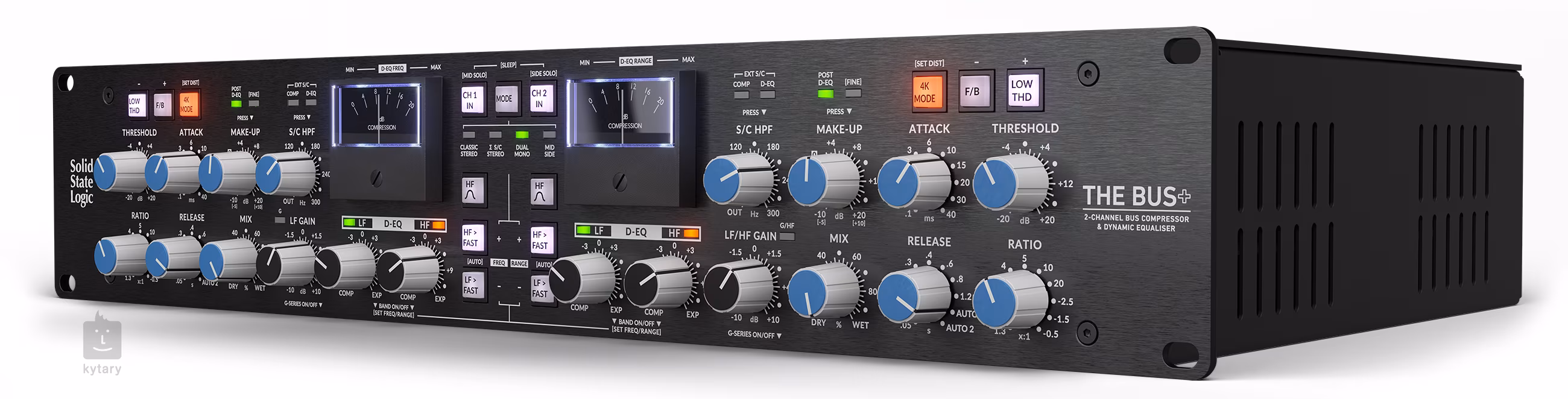 Legendárny štúdiový kompresor SSL BUS sa dočkal aktualizovanej verzie BUS+, ktorá ponúka veľký výkon alebo attack. Tento rackový kompresor ponúka to najlepšie, čo môžete pre svoje štúdio získať. Skvele si poradí s bicími, akustickou gitarou, vokálmi a samozrejme s farebnou saturáciou vašich stôp a finálnym mixom.