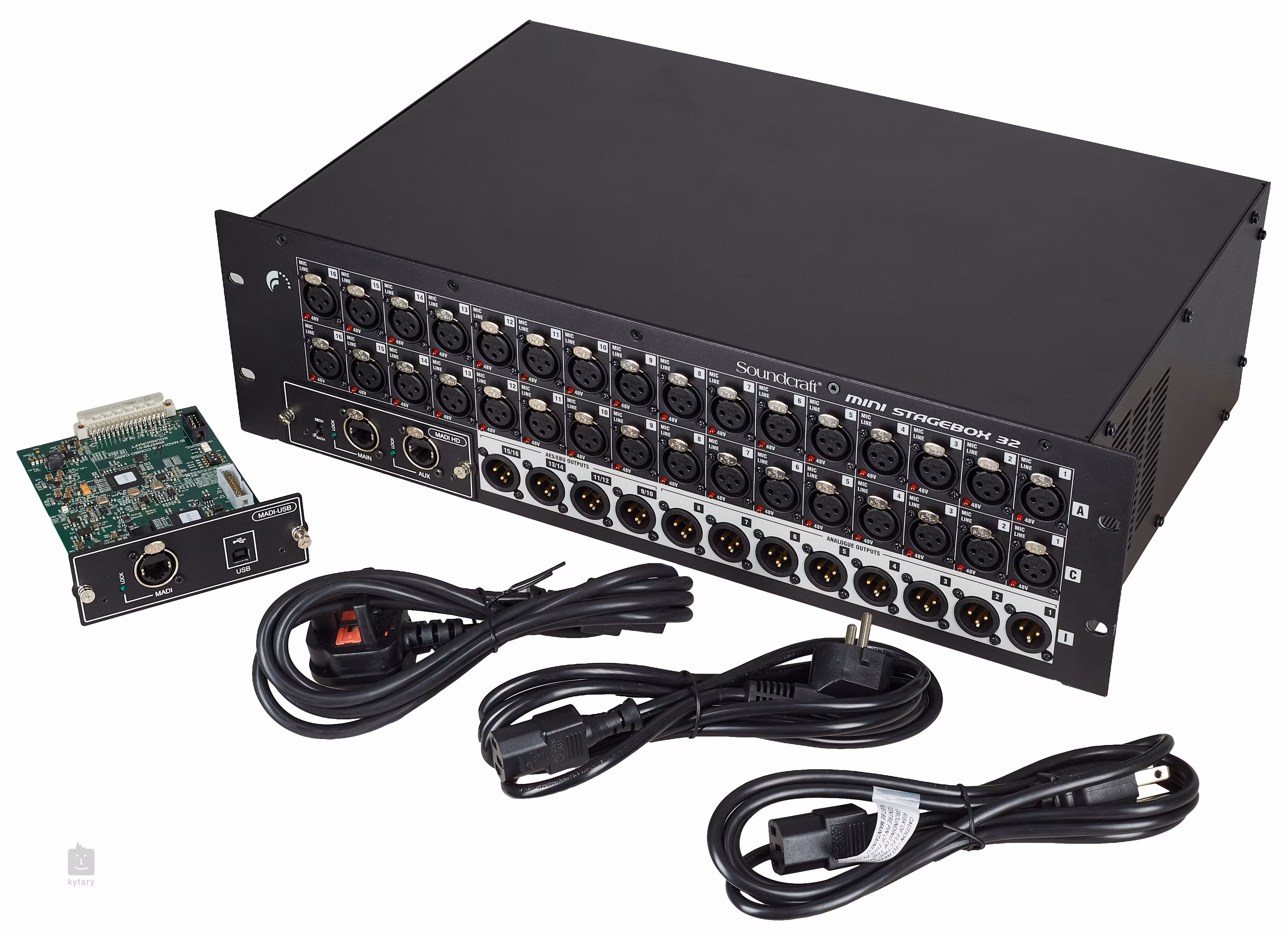 AudioRack Mini Stagebox 32 poskytuje jednoduché riešenie pre pódiové pripojenie a výrazne rozširuje možnosti digitálnych mixážnych pultov Vi/Si. Zaberá minimum potrebného priestoru (3U rack), pričom poskytuje 32 mikrofónových/linkových vstupov, 8 linkových výstupov a 4 páry výstupov AES/EBU. Podobne ako väčšie stageboxy sa táto kompaktná jednotka pripája k mixážnym pultom pomocou kábla Cat-5 a používa rovnaké optické rozhranie MADI.