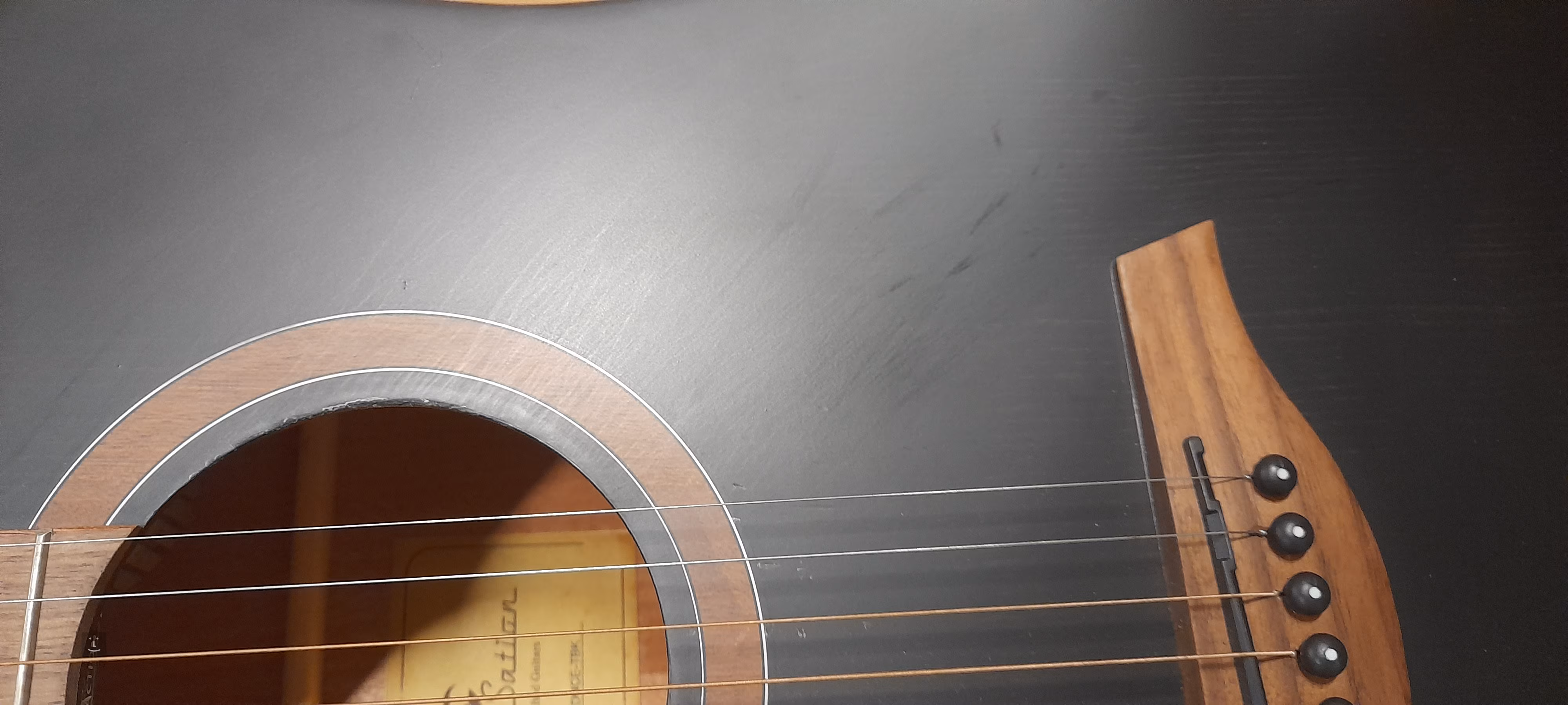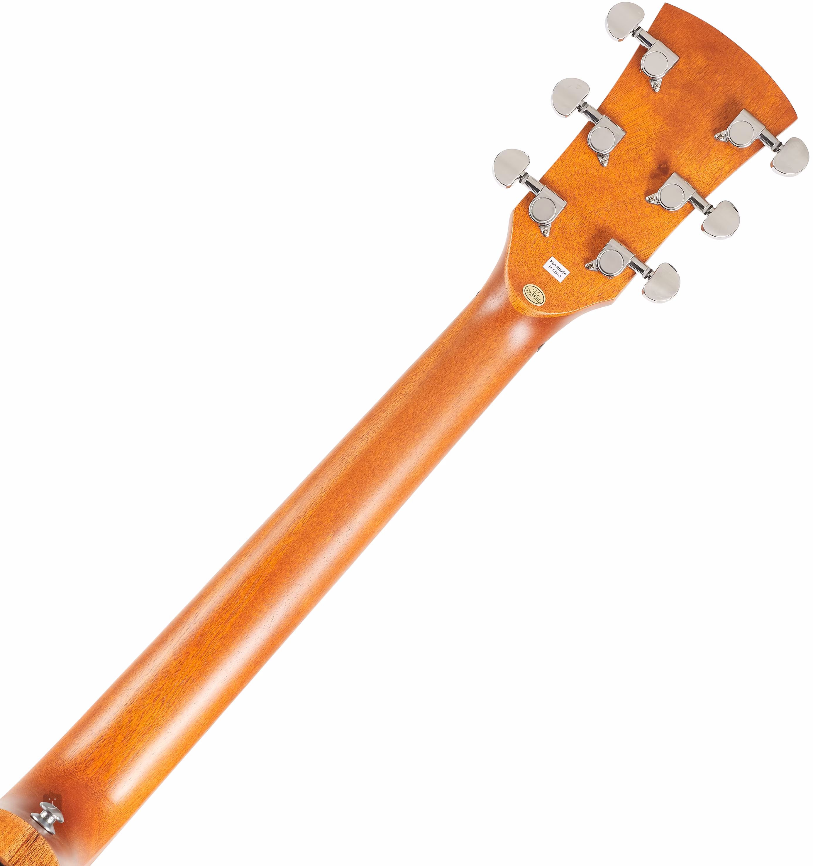 Struny držia v chrómových die-cast ladiacich mechanikách a v hmatníku z orechového dreva. Štýlovú povrchovú úpravu zvýrazňuje otvorený pórovitý transparentný čierny saténový lak a mahagónová väzba a opierka.