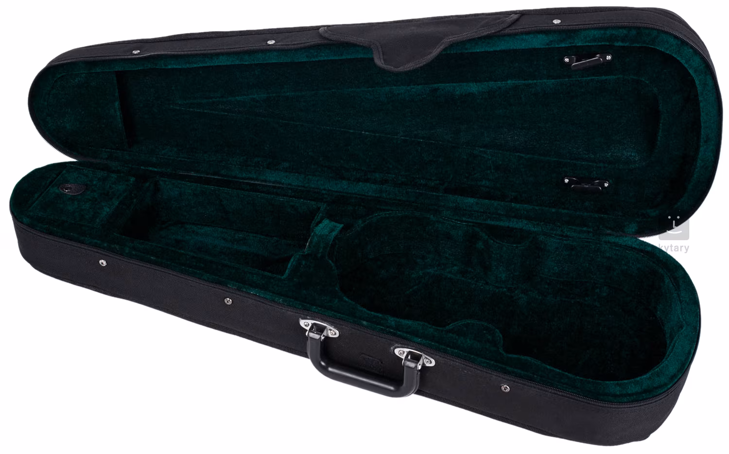 Puzdro na 3/4 husle má ľahkú, ale odolnú konštrukciu s vonkajším vreckom, dvoma ramennými popruhmi a pevnou rukoväťou. Povrch je potiahnutý polyesterom a stabilné zapínanie zabezpečuje dvojitý zips. Vnútorná časť je podšitá zamatom a ukrýva priehradku na príslušenstvo a držiak na mašle.