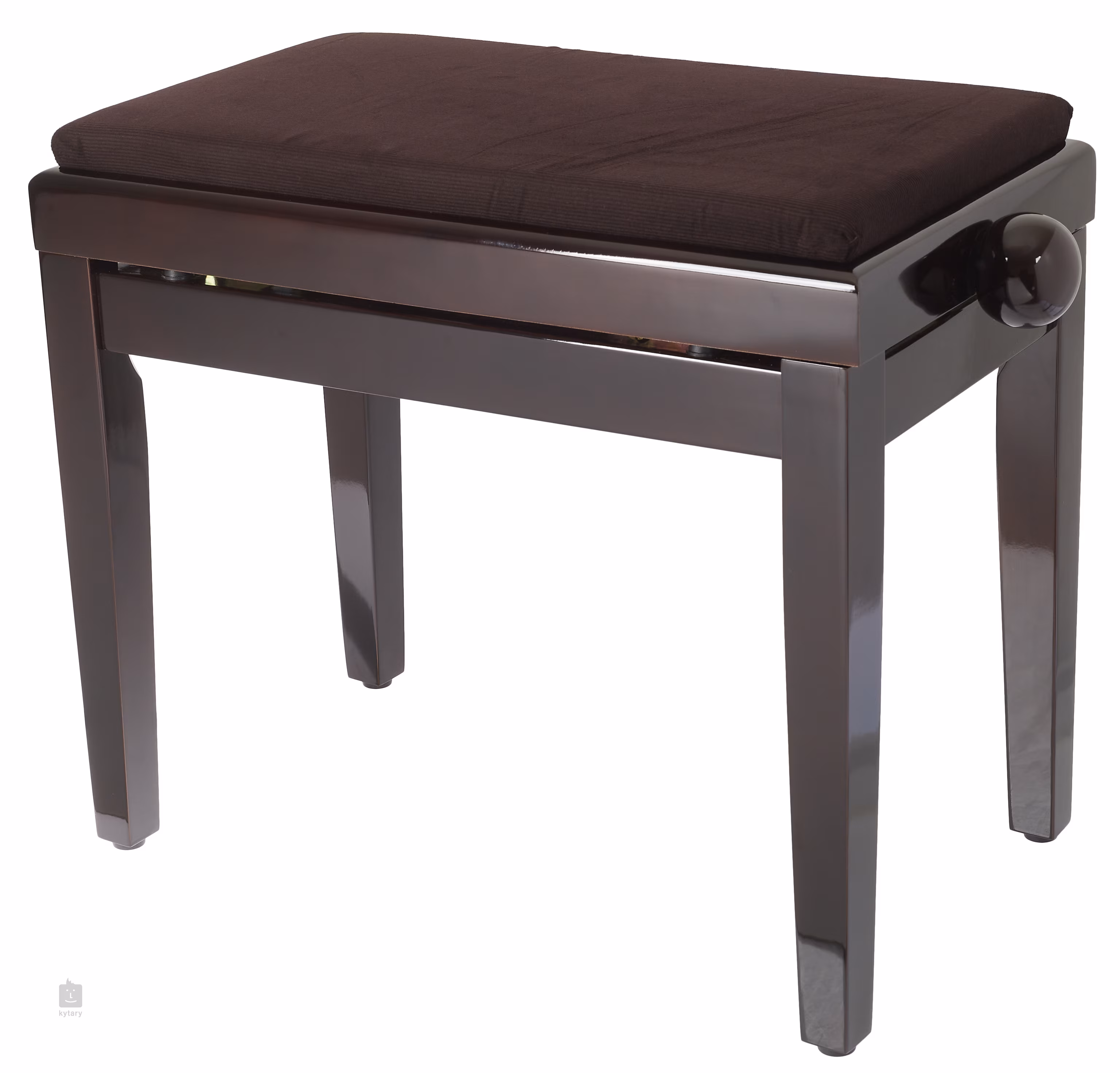 Klasická klavírna stolička s jednoduchým nastavením výšky a pohodlným sedadlom s čiernym zamatovým poťahom. Sedadlá sú k dispozícii v lesklej a matnej povrchovej úprave a sú k dispozícii vo viacerých farbách, ktoré zodpovedajú najbežnejším farbám klavírov a pianín.