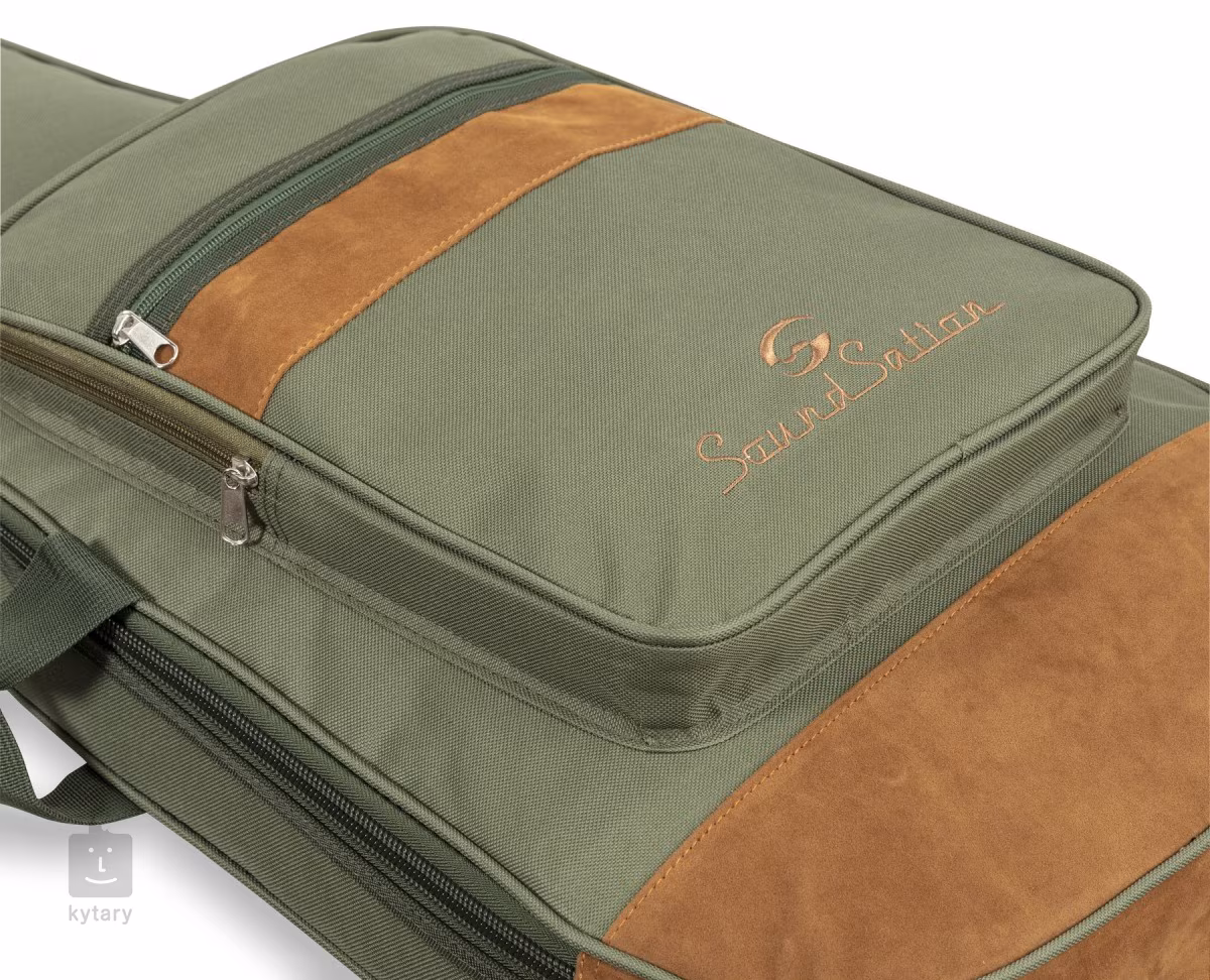 Soundstation SUEDE je štýlové puzdro so semišovými koženými vložkami, ktoré ponúka 10 mm polstrovanie EPE pre maximálnu ochranu vášho nástroja. Puzdro má tri vrecká na príslušenstvo a noty, je vybavené nastaviteľnými popruhmi, zadným a bočnými držadlami a je na ňom vyšité logo spoločnosti.
