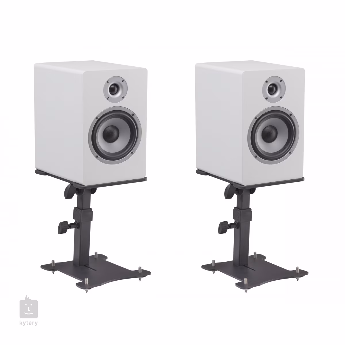 Univerzálny stolový stojan vhodný pre štúdiové monitory a reproduktory. Stojan má pogumovanú základňu, nastaviteľnú výšku a sklon na detailné nastavenie monitora počas nahrávania, mixovania, kritického počúvania alebo finálneho masteringu. Súčasťou balenia sú štyri gumové nožičky a kovové ihly na nastavenie úrovne.