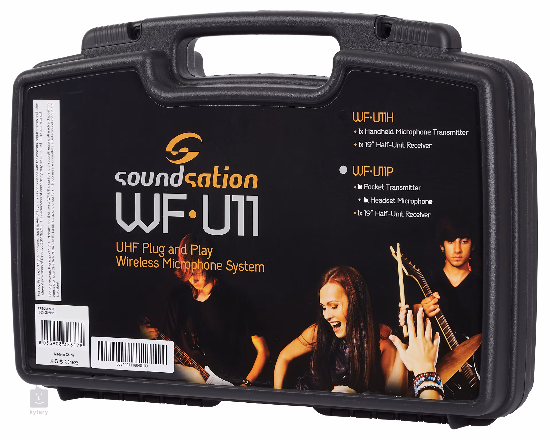 Obsah balenia zahŕňa prijímač, vysielač, mikrofón, napájací adaptér, kábel a batérie. Celá súprava sa dodáva v prenosnom puzdre.