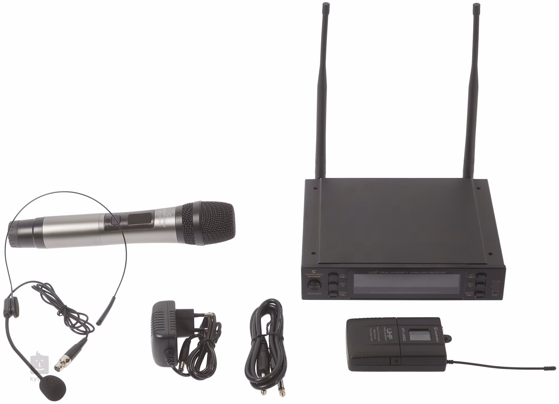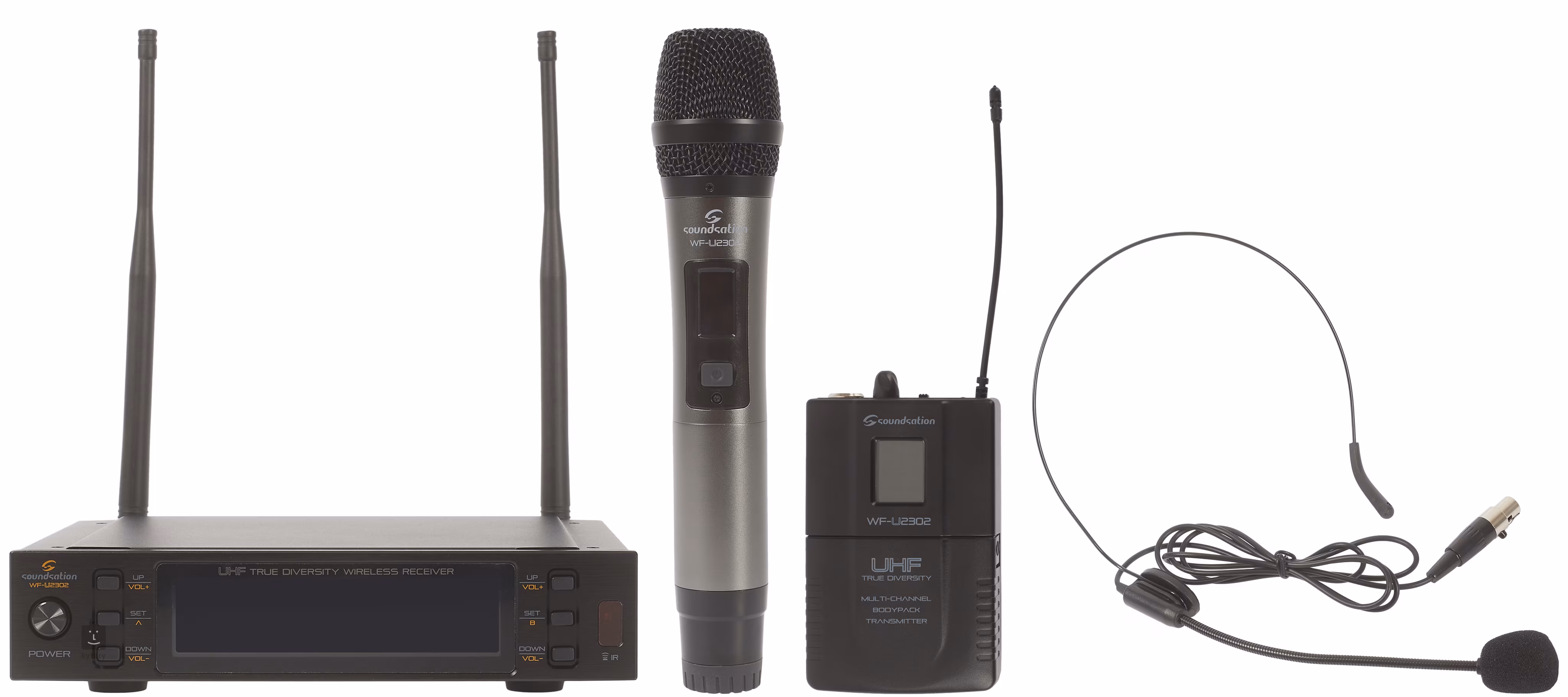 Soundsation WF-U2302HP je duálny profesionálny bezdrôtový set, ktorý pozostáva z jedného ručného dynamického mikrofónového vysielača, jedného náhlavného dynamického mikrofónu s bodypack vysielačom a prijímača True Diversity UHF s 300 kanálmi pre každý vysielač a jednoduchým, intuitívnym používateľským rozhraním.