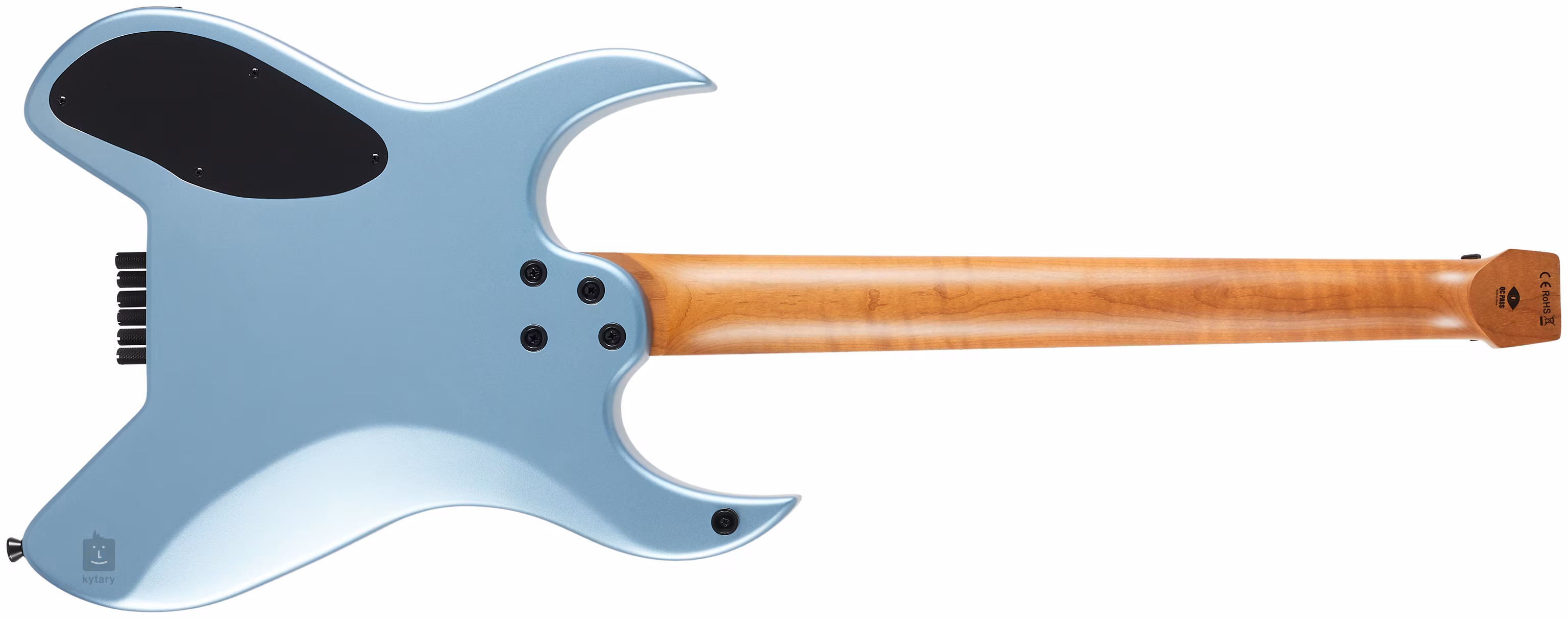 Dva firemné humbuckery Spira Villain s keramickými magnetmi a silnejším výstupom poskytujú gitare šťavnatý zvuk, ktorý oceníte najmä pri nastavení s vysokým zosilnením. Nastavenie zvuku je možné ovládať pomocou štandardných ovládačov. Struny sú upevnené v mechanikách špeciálne navrhnutých pre bezhlavové gitary. Štýlový vzhľad podčiarkuje matný lak a čierny hardware.