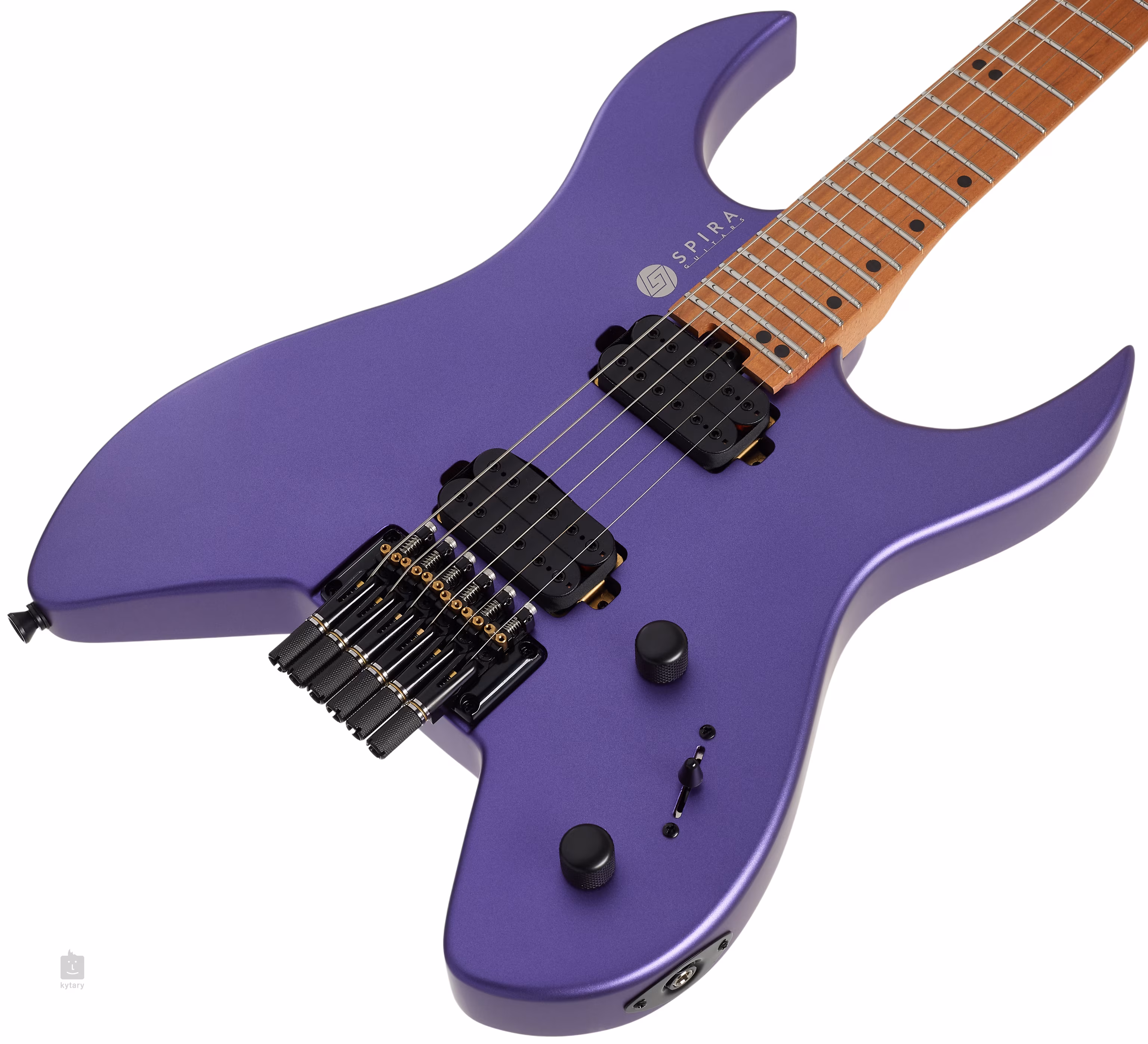 Dva firemné humbuckery Spira Villain s keramickými magnetmi a silnejším výkonom poskytujú gitare šťavnatý zvuk, ktorý oceníte najmä pri nastavení s vysokým zosilnením. Nastavenie zvuku je možné ovládať pomocou štandardných ovládačov. Struny sú upevnené v mechanikách špeciálne navrhnutých pre bezhlavové gitary. Štýlový vzhľad podčiarkuje matný lak a čierny hardware.