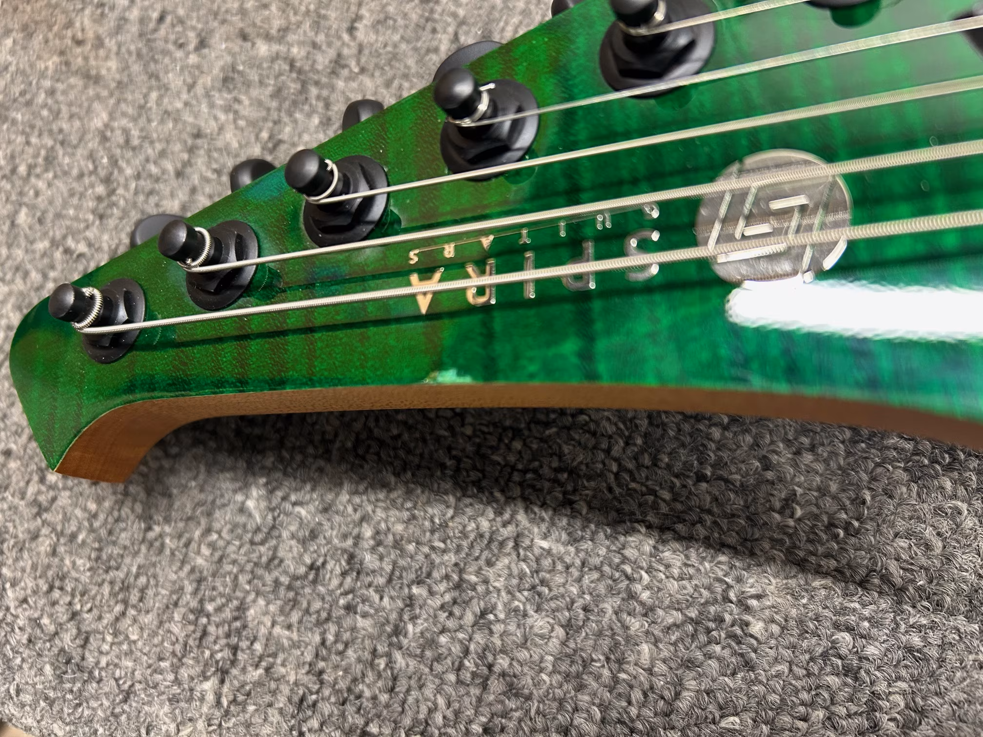 Topolové telo elektrickej gitary Spira Guitars S-450 TGR je vybavené vrchnou dýhou z plamenného javora a povrchovou úpravou Transparent Green. Ku krku z kanadského javora s profilom "Modern D" je prilepený javorový hmatník osadený dvadsiatimi štyrmi pražcami veľkosti Jumbo. Vďaka tepelnej úprave tela, krku a hmatníka je drevo stabilnejšie.