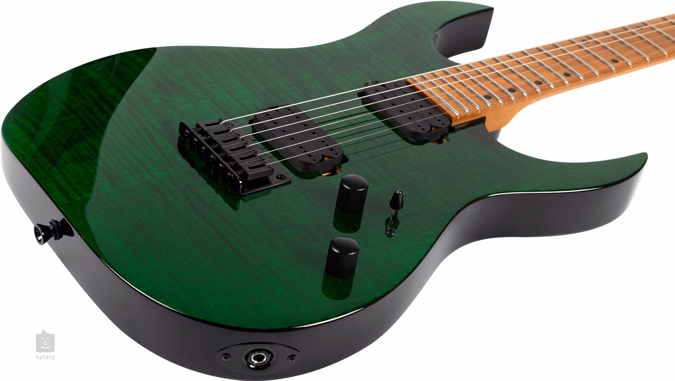Topolové telo elektrickej gitary Spira Guitars S-450 TGR je vybavené vrchnou dýhou z plamenného javora a povrchovou úpravou Transparent Green. Ku krku z kanadského javora s profilom "Modern D" je prilepený javorový hmatník osadený dvadsiatimi štyrmi pražcami veľkosti Jumbo. Vďaka tepelnej úprave tela, krku a hmatníka je drevo stabilnejšie.
