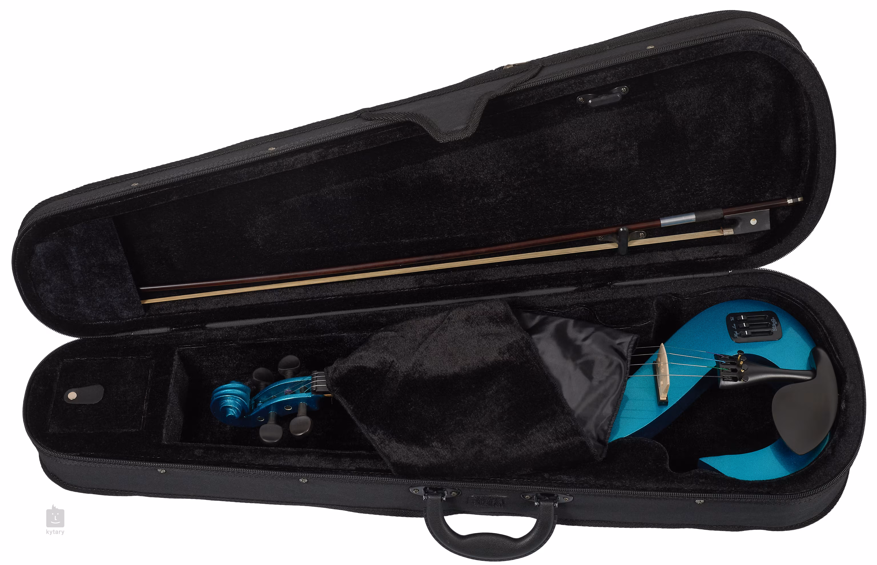 Stagg 4/4 elektrické husle. Telo je vyrobené z masívneho javora, nástroj je vybavený piezoelektrickým snímačom a aktívnym predzosilňovačom.Husle sú tiež vybavené ovládačom hlasitosti, 2-pásmovým ekvalizérom a výstupom na slúchadlá. Tieto krásne husle s odvážnym dizajnom dostanete vrátane puzdra, sláčika, kalafuny, slúchadiel a 9V batérie.
