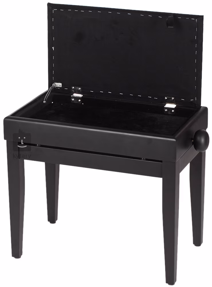 Stolička ke klavíru s úložným prostorem pod odklopným sedákem.