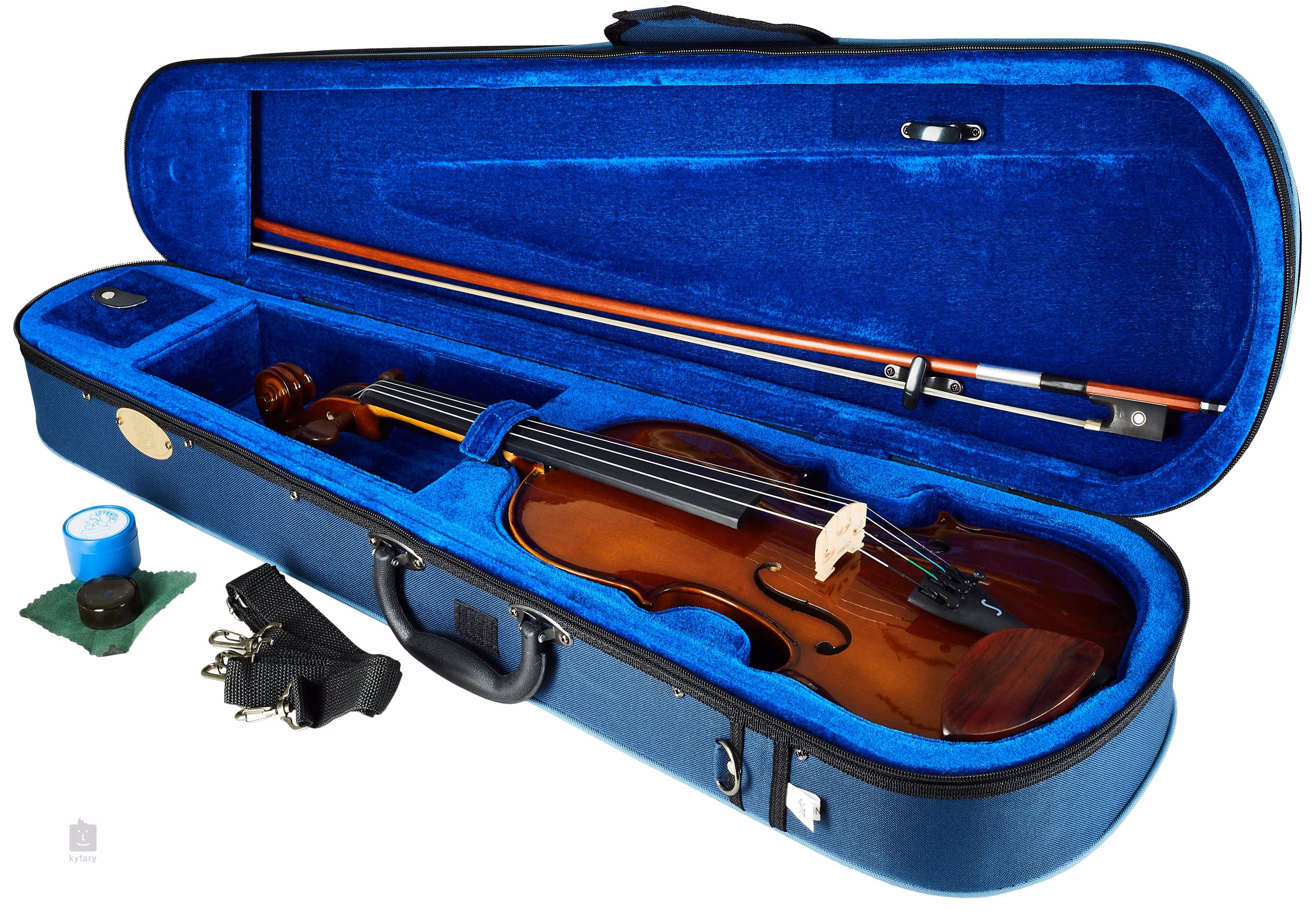 Okrem samotného nástroja súprava obsahuje aj kvalitný drevený sláčik s ebenovou žabkou a ľahké polstrované puzdro, ktoré spoľahlivo ochráni nástroj na cestách.