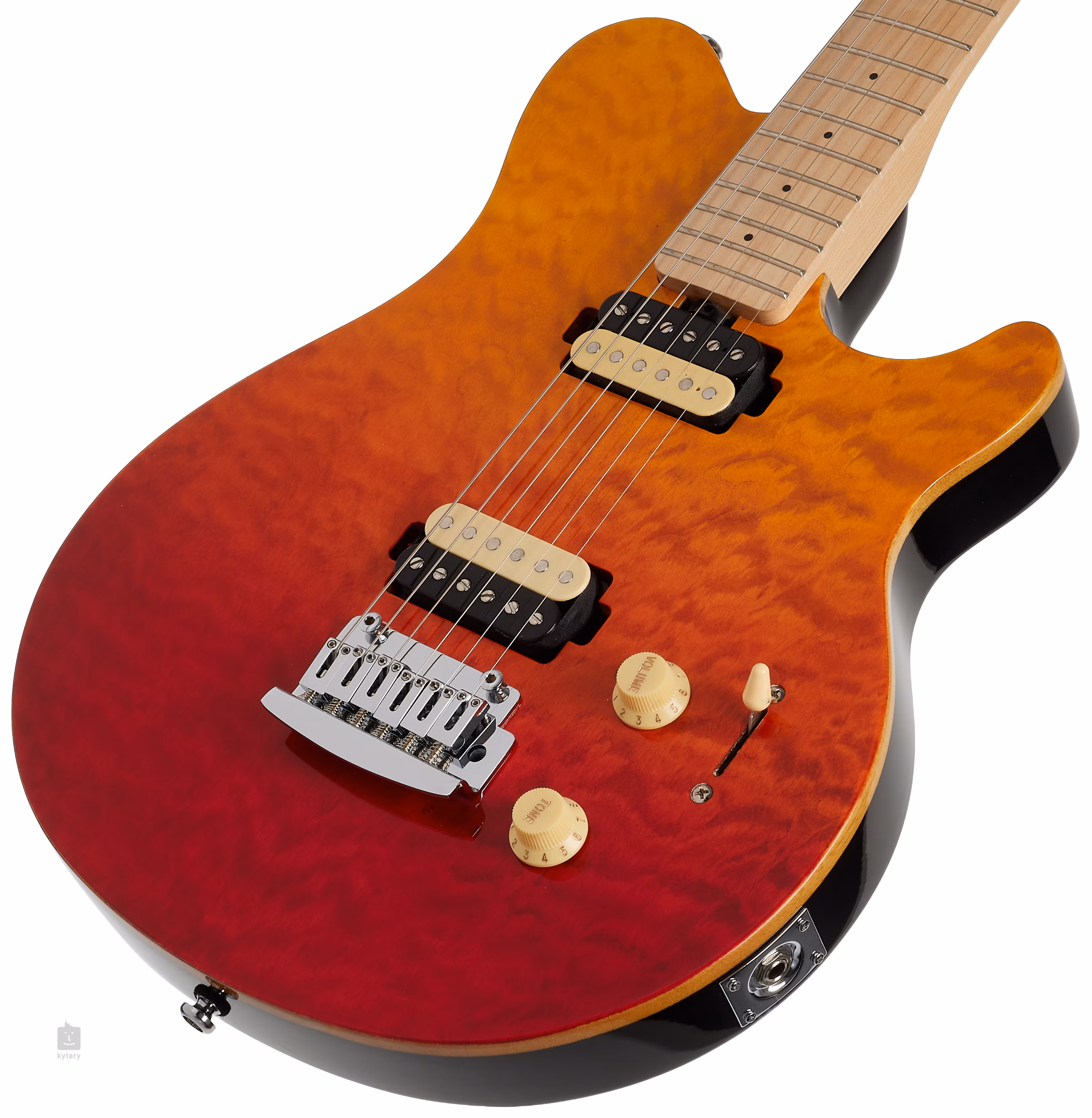 A presne to je prípad moderného jednorezného modelu Axis AX3QM Spectrum Red. Telo gitary s ázijským javorovým korpusom zdobí prešívaná javorová vrchná dýha. Zrnitosť javora je zvýraznená povrchovou úpravou Spectrum Red. Príjemný asymetrický profil krku umožňuje hladký sklz po celej ploche javorového hmatníka osadeného dvadsiatimi dvoma pražcami.