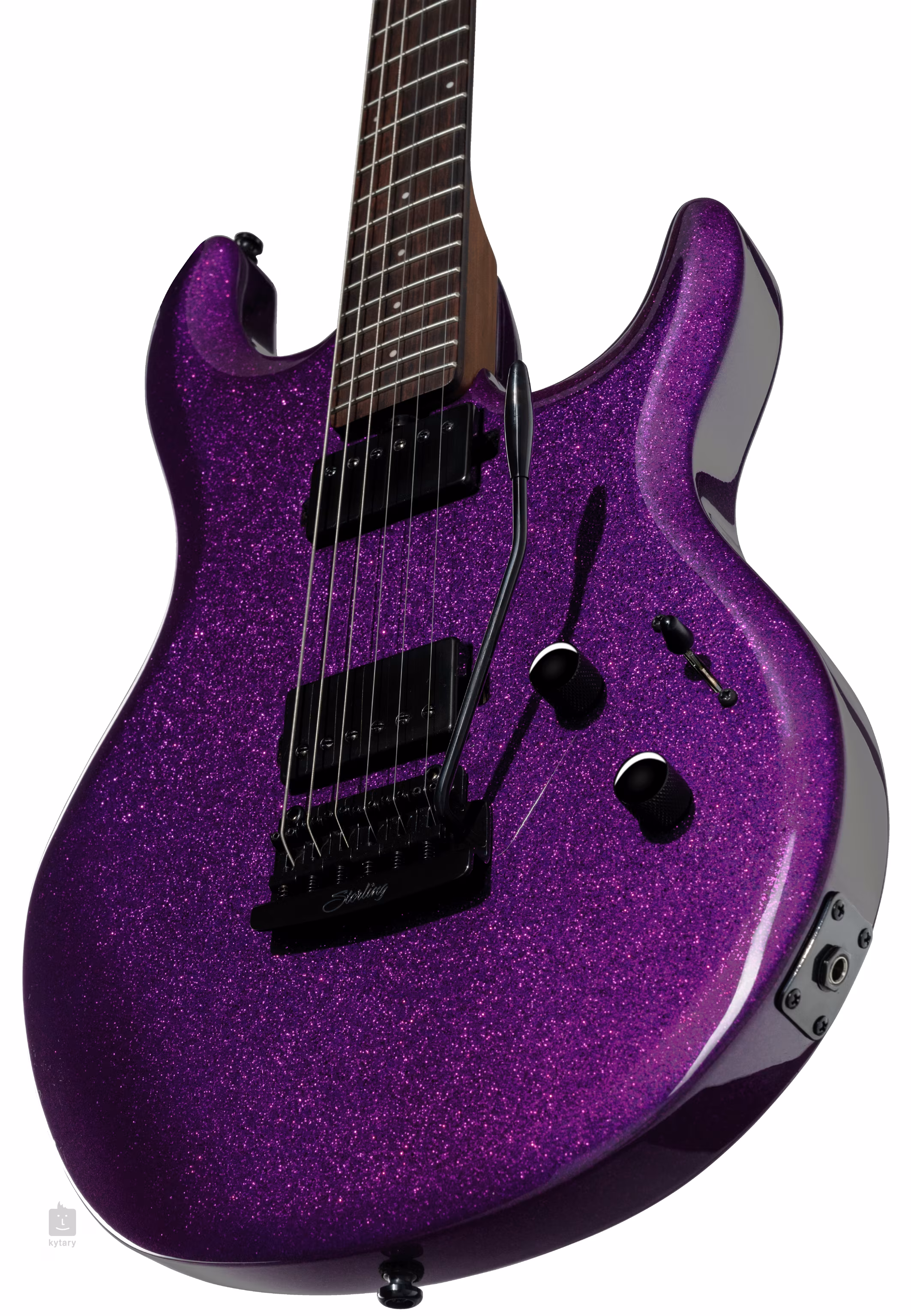 Dva humbuckery Sterling by Music Man dodávajú gitare šťavnatý dynamický zvuk inšpirovaný tónom a pražcami S. Lukathera. Jeho kontúry upravíte pomocou potenciometrov hlasitosti, tónovej clony a päťpolohového prepínača snímačov. Ovládač hlasitosti funguje aj ako boost - jeho stlačením (funkcia push/push) nakopnete zvuk o 12 dB.