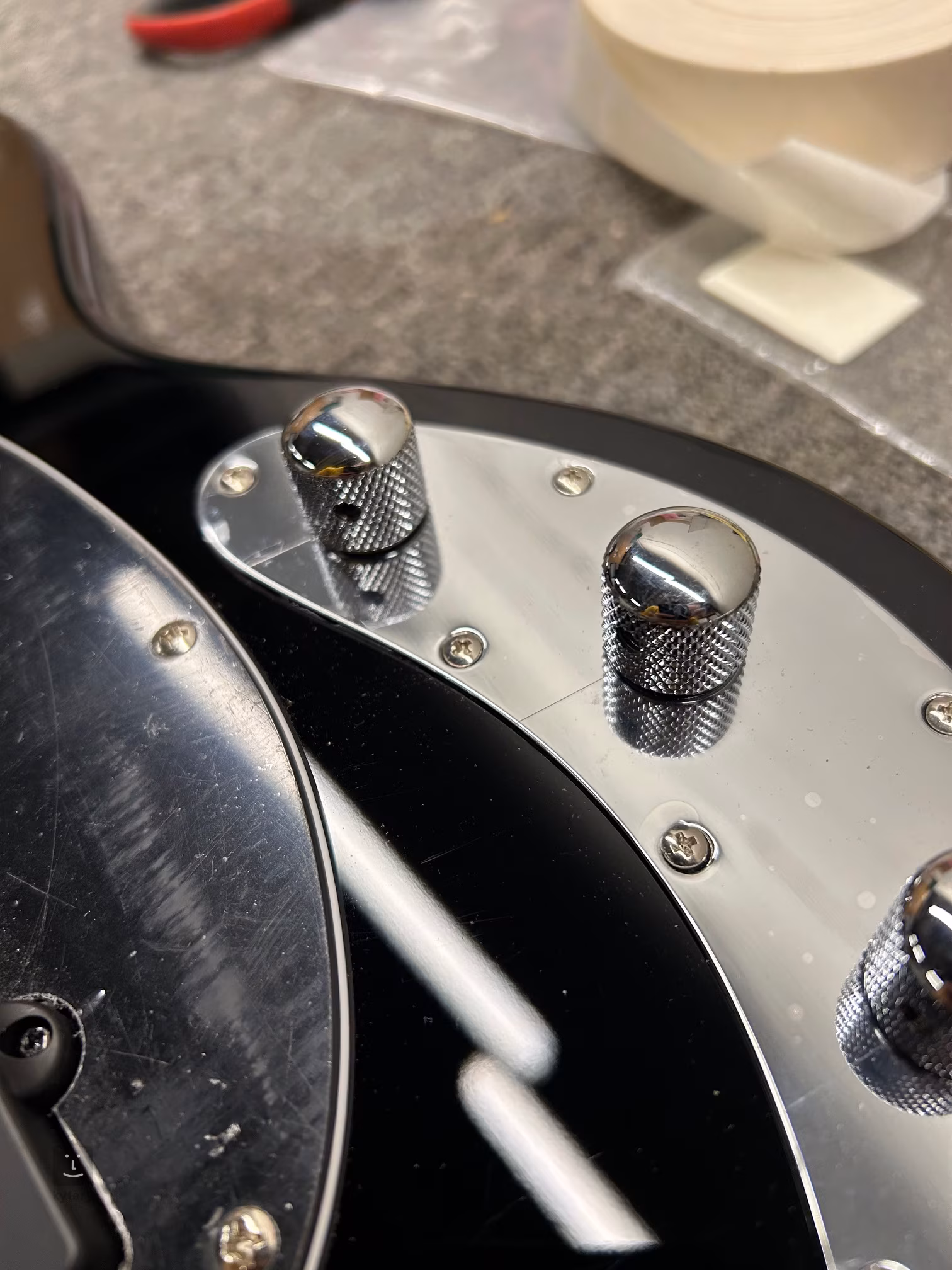 Ladiace mechaniky na hlavici sú umiestnené tradičným "Music Man spôsobom", teda 3 + 1. Na druhej strane sú struny ukotvené v pochrómovanej vintage hlavici z tvrdenej ocele Music Man Designed. Gitara má samozrejme nastaviteľnú výstuhu krku, s ktorou sa dá pracovať bez nutnosti demontáže strún alebo iného hardvéru.