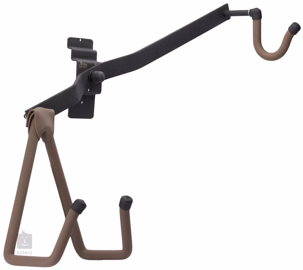 Tento držák je určen pro elektrické kytary s tloušťkou těla cca do 57 mm. Díky možnosti 360°otáčení je vhodný i pro levoruké modely. Je vyroben z pevné, ručně svářené oceli, v místech kontaktu s nástrojem potažené měkkou gumou, která zabrání poškrábání laku.