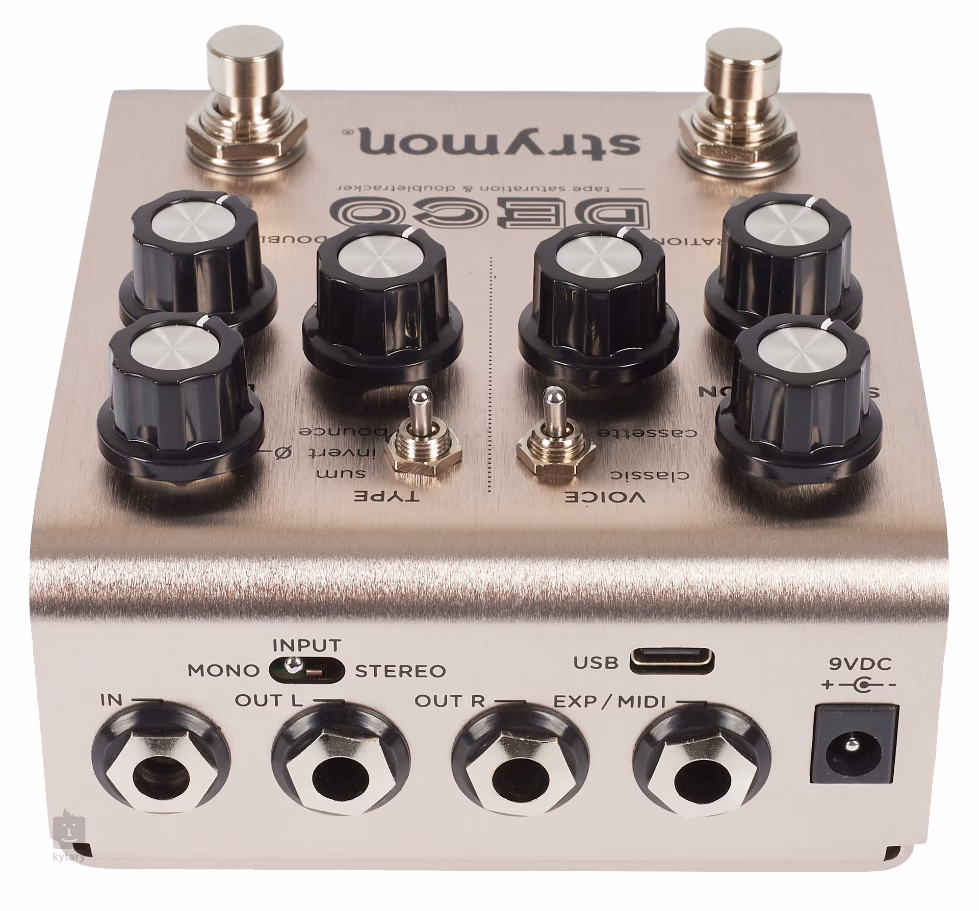 Vstup pre expresný pedál umožňuje pripojiť externý expresný pedál TRS, prepínače MiniSwitch/MultiSwitch Plus alebo MIDI pripojenia TRS. Všetka elektronika je umiestnená v odolnom, ale ľahkom hliníkovom šasi. Strymon Deco V2 ponúka výber medzi obvodmi true bypass a buffered bypass.