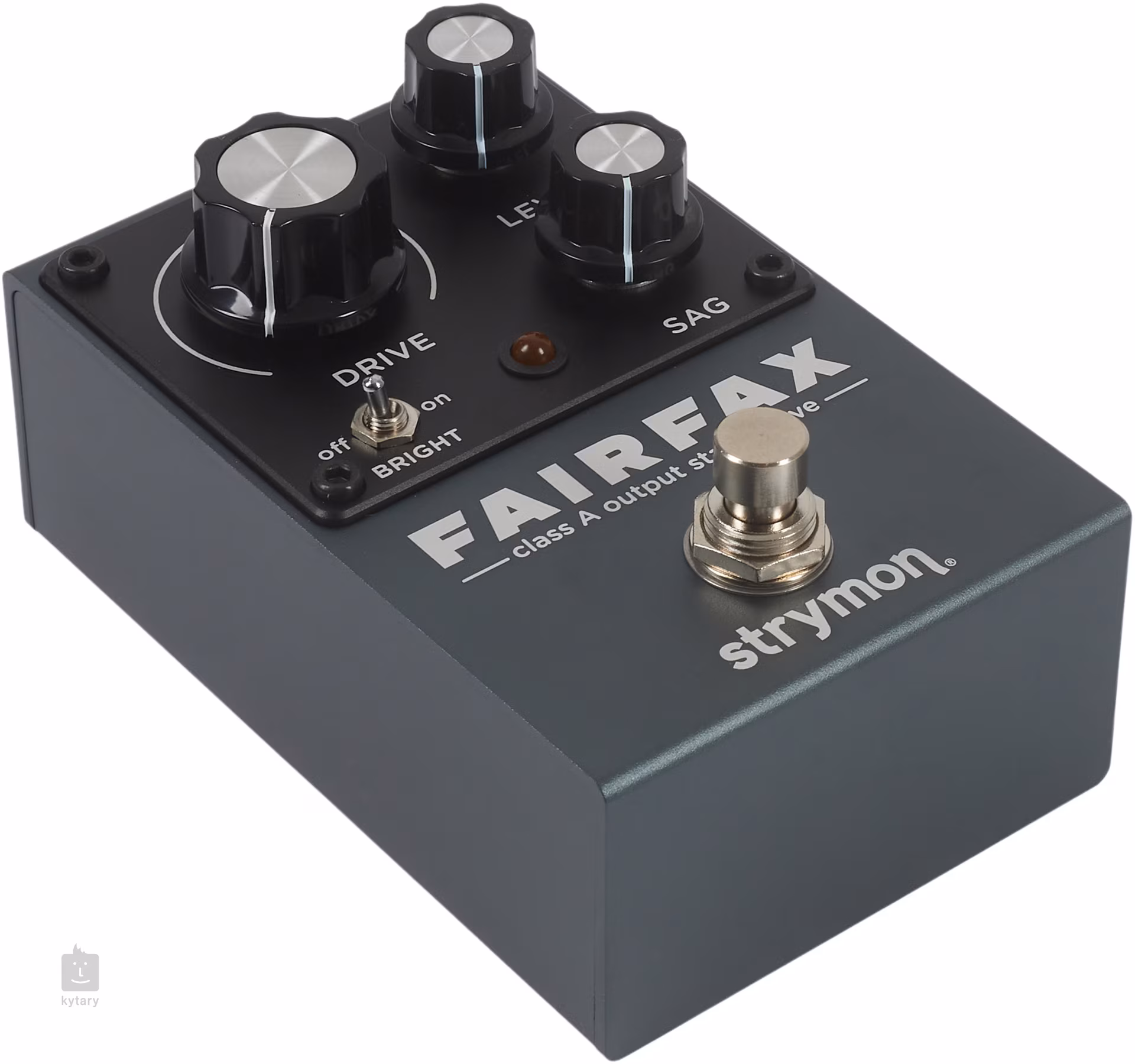 Okrem potenciometra Sag je efekt vybavený ovládačmi Drive a Level, ktoré umožňujú používať Fairfax ako jemný zosilňovač lampy, klasický rockový crunch alebo plne nasýtený high-gain drive. Prepínač Bright vám umožňuje jemné ladenie vysokých frekvencií a dosiahnutie čohokoľvek od hladkého, zaobleného zvuku až po otvorenejší a jasnejší tón, ktorý ľahko prechádza mixom.