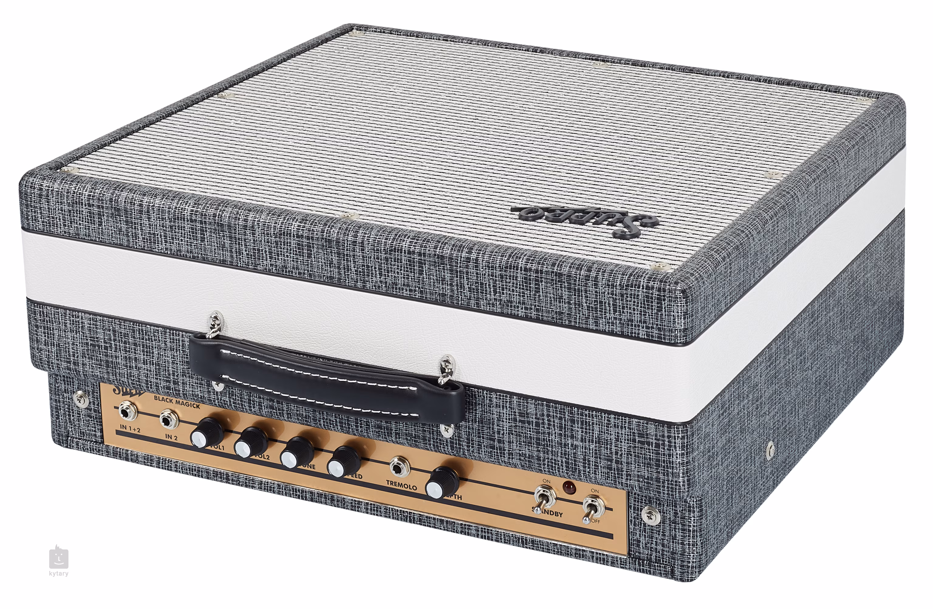 Gitarové lampové kombo Black Magick oživuje zvuk a dizajn slávneho rockového zosilňovača – komba Supro z roku 1959, ktoré Jimmy Page použil pri nahrávaní albumu Led Zeppelin I. Ide o 25-wattové kombo poháňané zosilňovačom triedy A s dvojicou lampy 6973 a 12-palcovým reproduktorom Jensen P12Q. Dva vstupy ponúkajú výber medzi plným tónom kombinovaných nezávislých predzosilňovacích kanálov (vstupy In 1+2) a dynamickejším zvukom (In 2). Ovládacie prvky komba určujú hlasitosť predzosilňovacích kanálov Vol 1 a Vol 2, ekvalizér (Tone) a intenzitu vstavaného tremolo efektu (možno ovládať pomocou nožného prepínača, nie je súčasťou balenia).