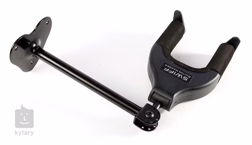 Gitarový stojan Swiff U2-B ponúka dokonalé riešenie na zavesenie vášho nástroja. Vďaka predĺženej tyči a možnosti otáčania držiaka vo viacerých smeroch môžete ušetriť miesto pri zavesení viacerých nástrojov vedľa seba. Stojan má ochranné zámky, ktoré sa po vložení nástroja automaticky zatvoria, čím zabránia jeho pádu a prípadnému poškodeniu nástroja. Otočná hlava stojana sa prispôsobí rôznym tvarom gitarových hláv a iných nástrojov, takže spoľahlivo udrží napríklad akustické, klasické, elektrické, basové, mandolínové alebo banjové nástroje. Všetky časti, ktoré sa dotýkajú nástroja, sú vystlané mäkkou penou, takže sa nemusíte obávať poškriabania.