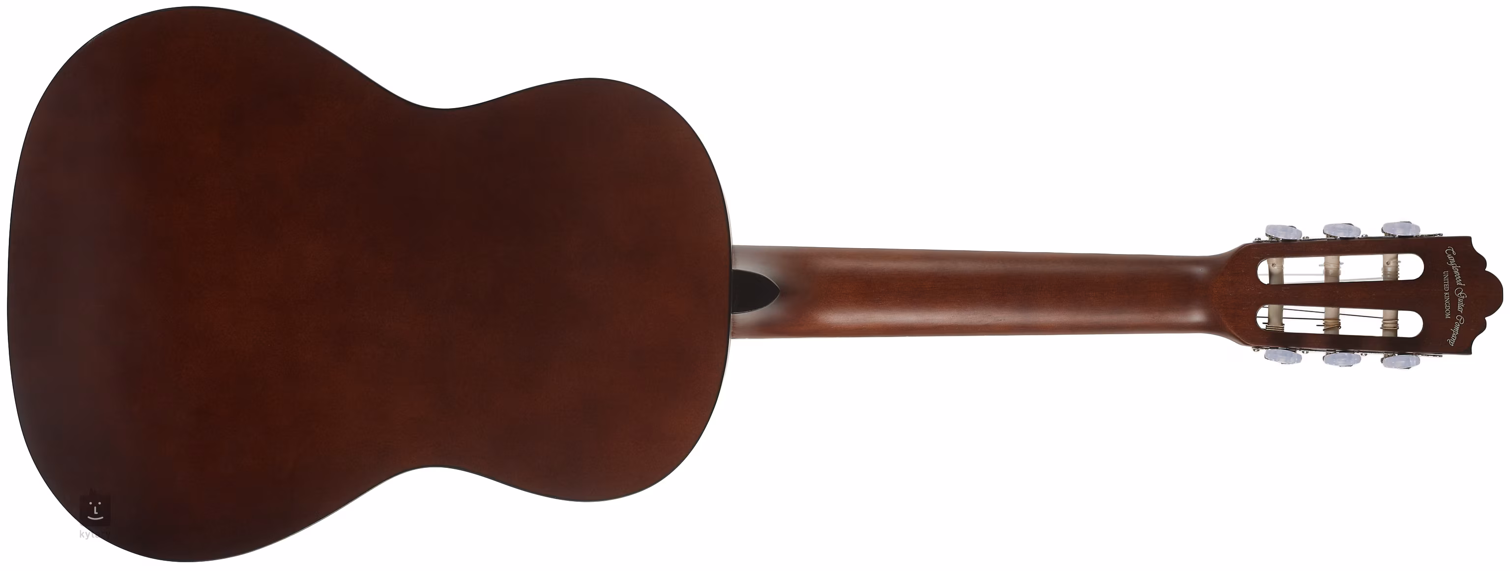 Struny jsou uchyceny v chromovaných klasických mechanikách a palisandrové kobylce. Stylové zpracování podtrhují tradiční prvky v podobě rozety a lemovky.