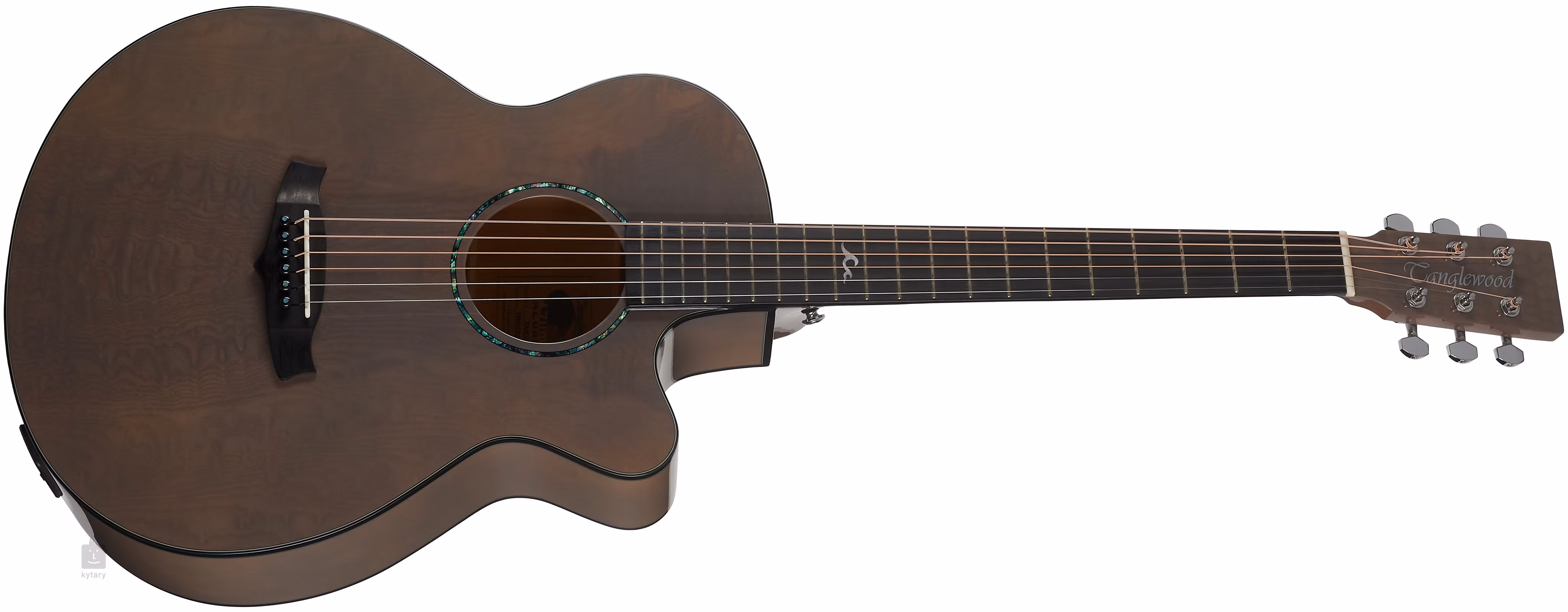 Tanglewood TA4CE GY je elektroakustická gitara s moderným tvarom tela „Super Folk“, ktorý je užší a plytší ako modely Dreadnought. Vrchná doska gitary je vyrobená z laminovaného severoamerického čierneho orecha, zatiaľ čo zadná doska a bočnice sú vyrobené z laminovaného javora. Luxusnú textúru orecha zdôrazňuje lesklá povrchová úprava Harbour Grey Gloss.