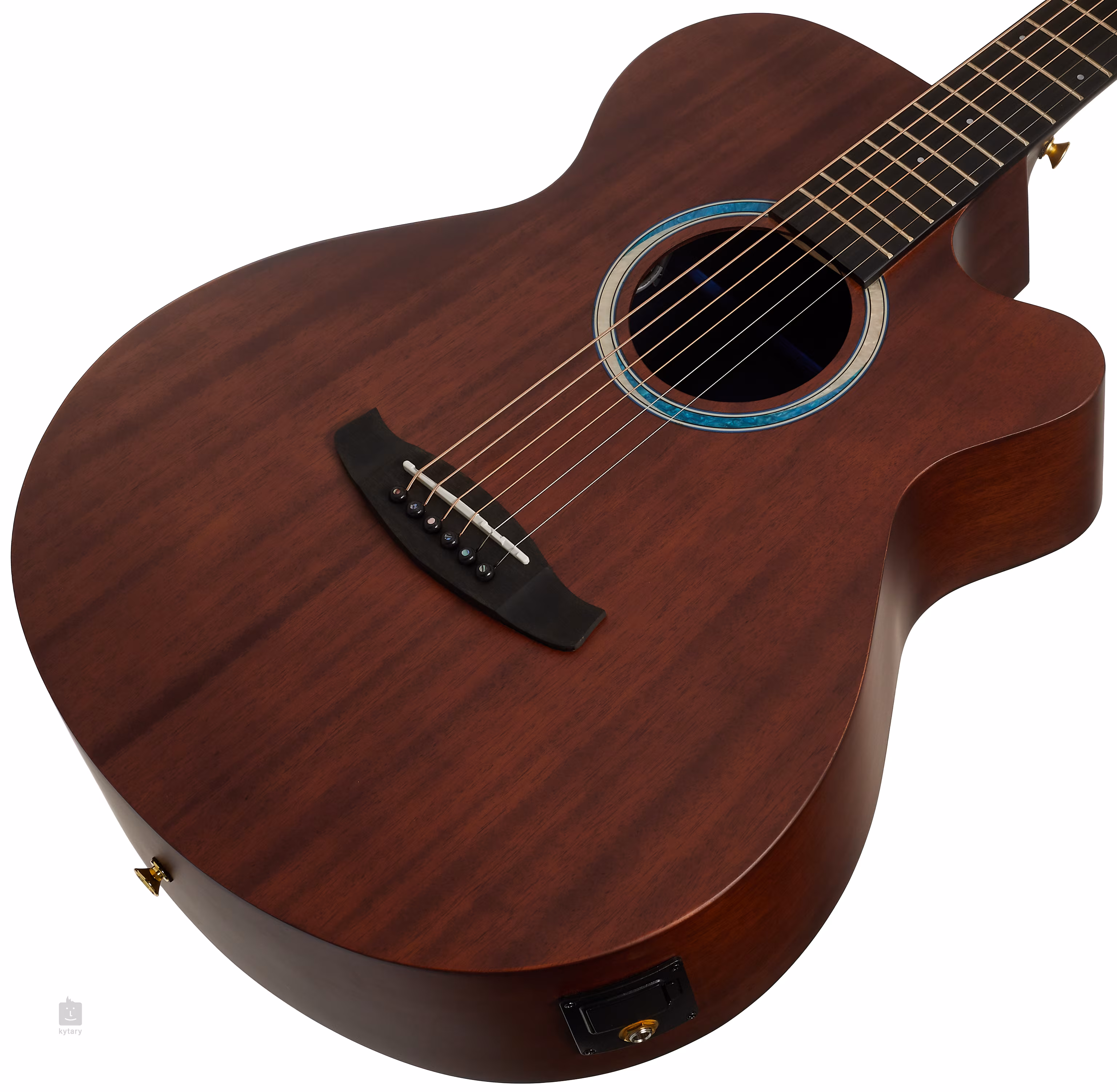 Možnost ozvučení nabízí firemní elektronika RE-02 EQ s dvoupásmovým ekvalizérem a integrovanou ladičkou. Struny jsou uchyceny v otevřených mechanikách ve zlatém provedení a kobylce z kompozitu. Pěkné zpracování podtrhuje perleťová rozeta a saténový finiš.