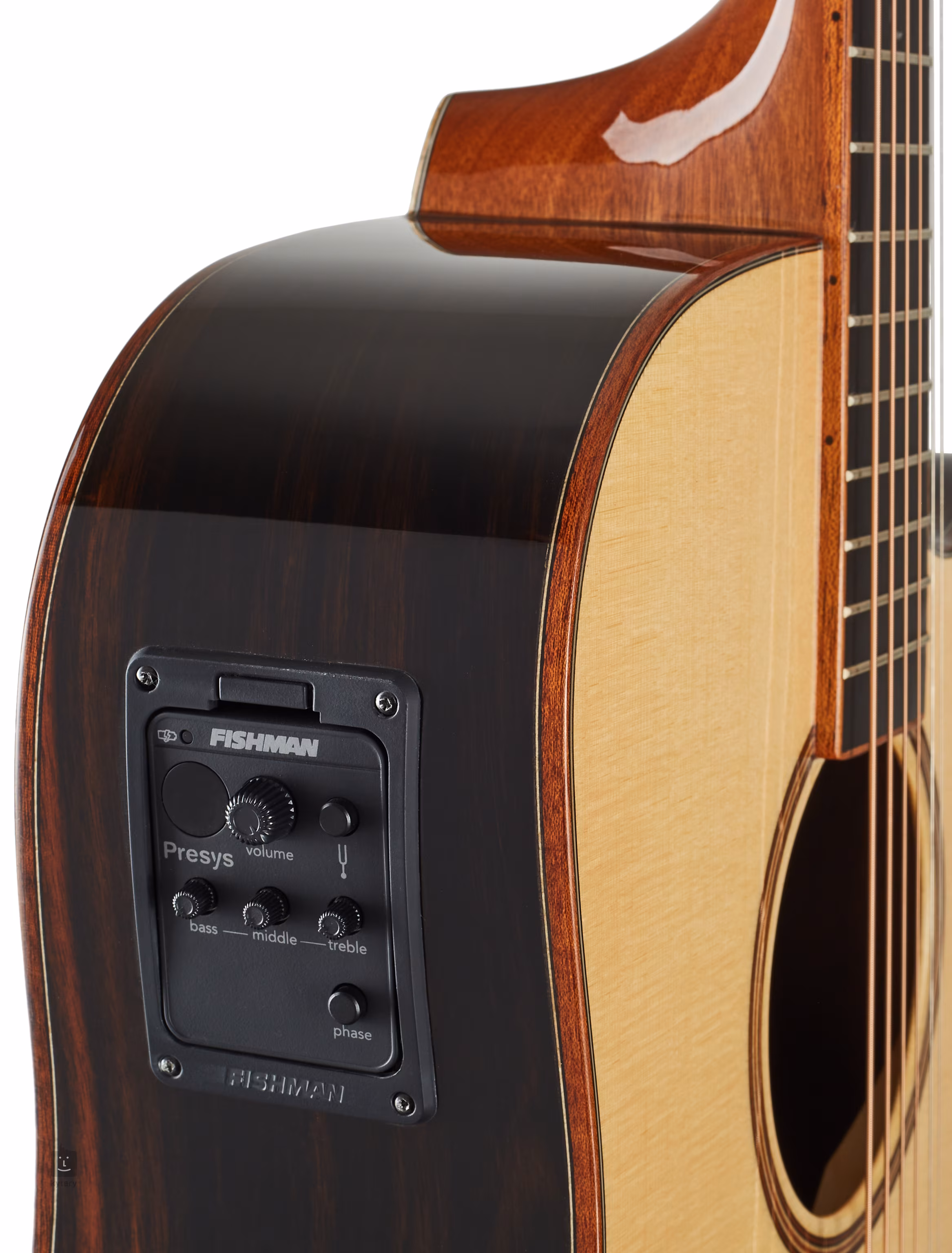 Ozvučovací systém je vybavený elektronikou Fishman Presys s trojpásmovým ekvalizérom a vstavanou ladičkou.