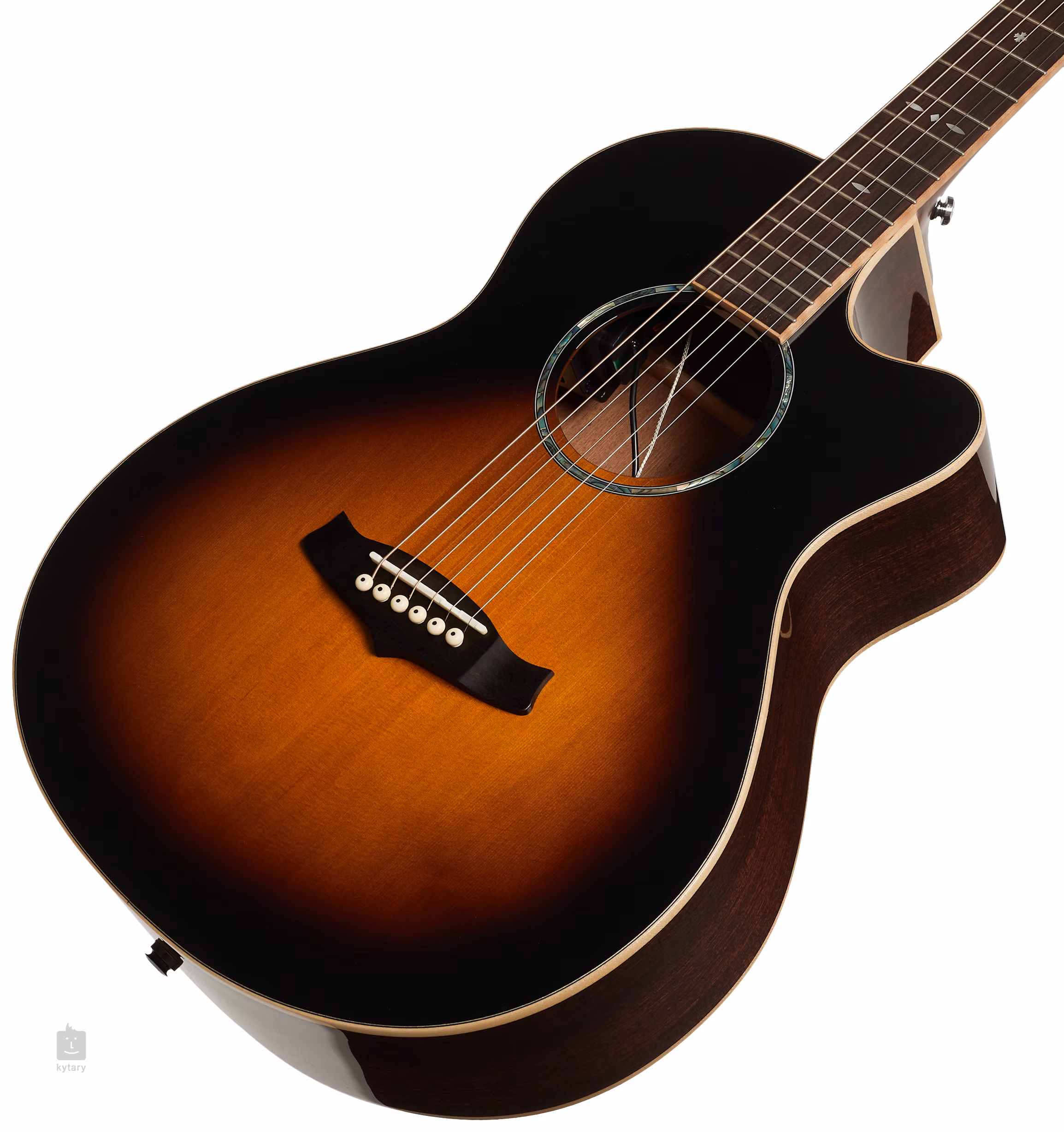 Britská značka Tanglewood predstavuje cenovo dostupnejšie akustické gitary v retro a modernom dizajne. TW45 R VS E je elektroakustická gitara typu "Super Folk", t. j. nástroj s užším a plytším telom, z vyššej modelovej série Sundance Reserve.