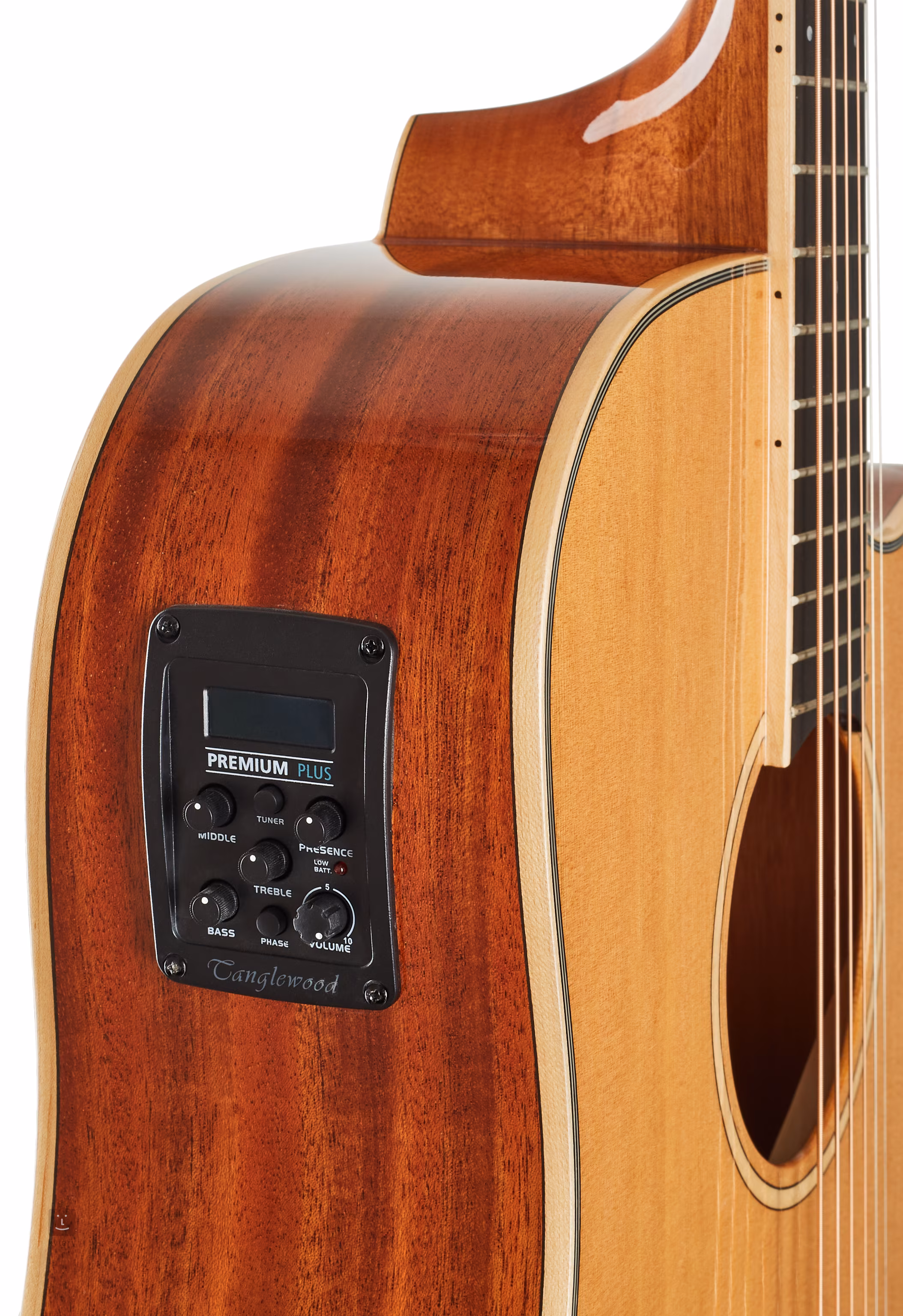 Možnosti ozvučenia zahŕňajú firemný predzosilňovač TW Premium Plus so štvorpásmovým ekvalizérom, funkciou Phase a integrovanou ladičkou. Struny držia v chrómových die-cast mechanikách a kompozitnej hlavici prostredníctvom nultého a sedlového pražca NuBone. Krásne remeselné spracovanie podčiarkuje obojstranná javorová väzba tela doplnená čiernymi a bielymi linkami a javorovou rozetou.