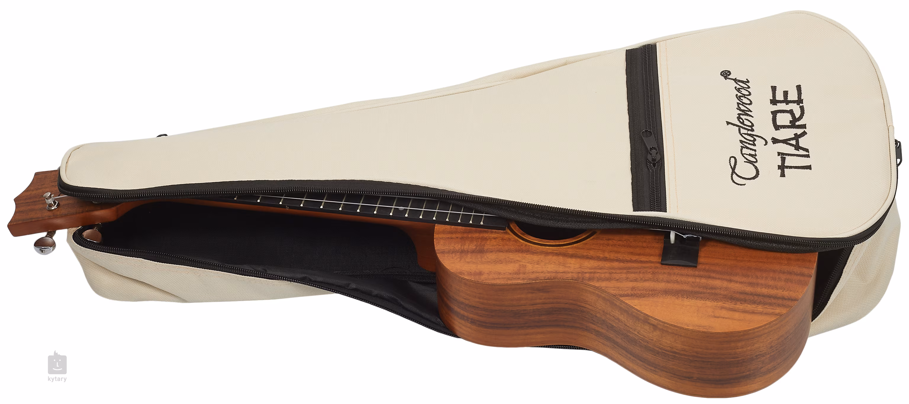 Struny sú uchytené v pochrómovaných ladiacich mechanikách gitarového typu a kompozitnom hmatníku. Pekné spracovanie podčiarkuje rozeta zložená z javorových a mahagónových krúžkov. Ukulele sa dodáva v gig bagu.