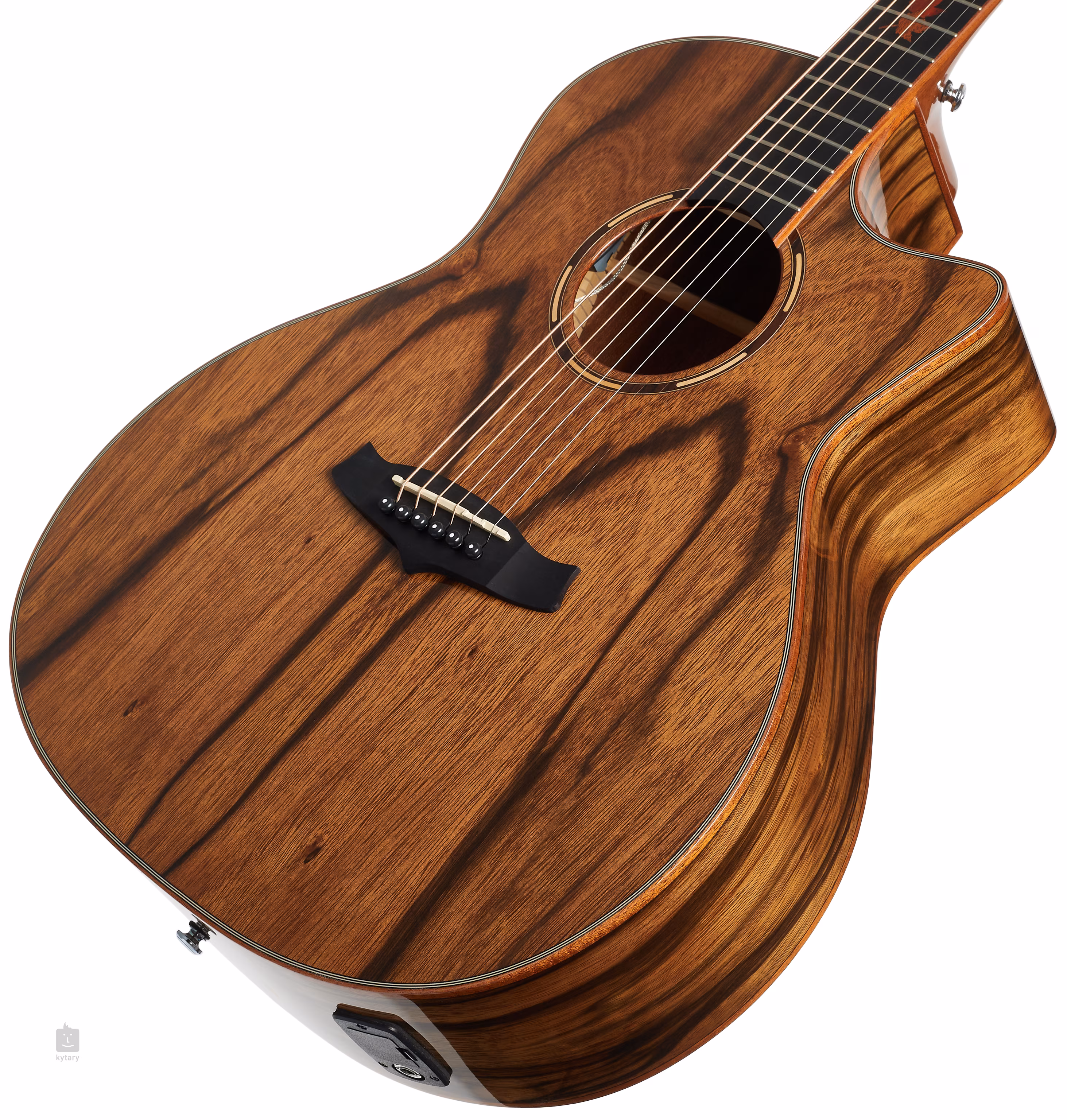 TWX6CEPW je elektroakustická gitara zo série Winterleaf Exotic v obľúbenom tvare tela Grand Auditorium, nástroj univerzálne vhodný na hru trsátkom a prstovou technikou. Masívnu mahagónovú rezonančnú dosku zdobí vrchná dyha z figurovaného paldao (tichomorský orech), zatiaľ čo zadná doska a luby sú vyrobené z laminovaného paldao. Krk nato, označovaný ako "Eastern Mahogany", je prilepený k hmatníku z kompozitného materiálu Eboncore v ebenovom prevedení s dvadsaťjeden pražcami. Praktický spodný výrez tela uľahčuje hru na vyšších polohách hmatníka.